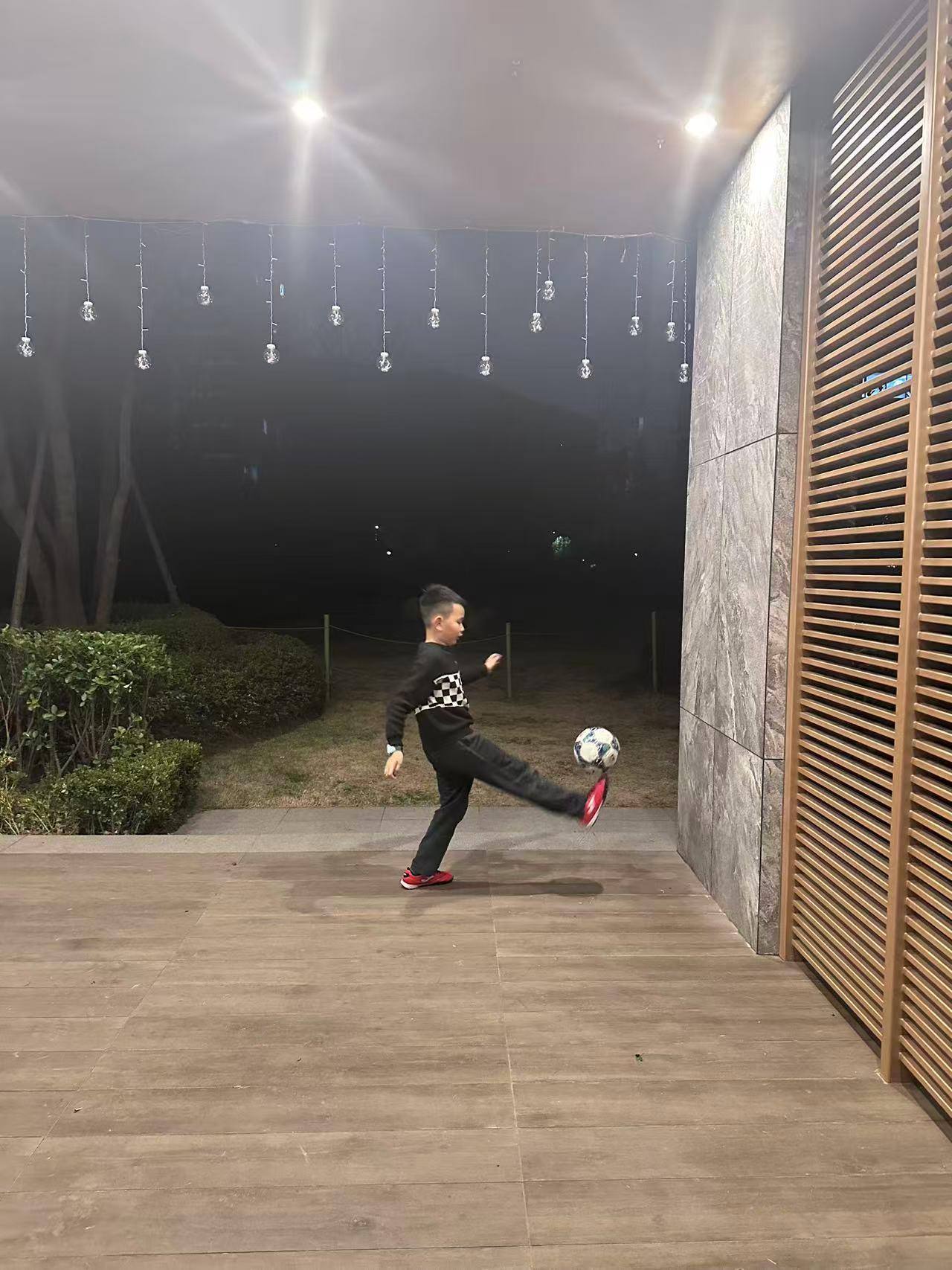 老家的院子,成了孩子们颠球的舞台