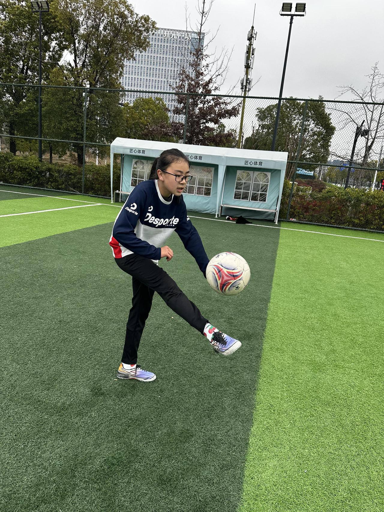“每次去哪里,行李箱里都会有她的足球鞋和足球,我们家已经养成这个习惯了。”这个春节一家人在姥姥姥爷家过年,李一依也始终坚持打卡,姥姥姥爷都已经成了她的“球迷”,姥爷经常给她点赞——(你这个球踢得挺好),足球这项运动不仅让她变得更加自信,更让她在坚持中学会了直面挑战。