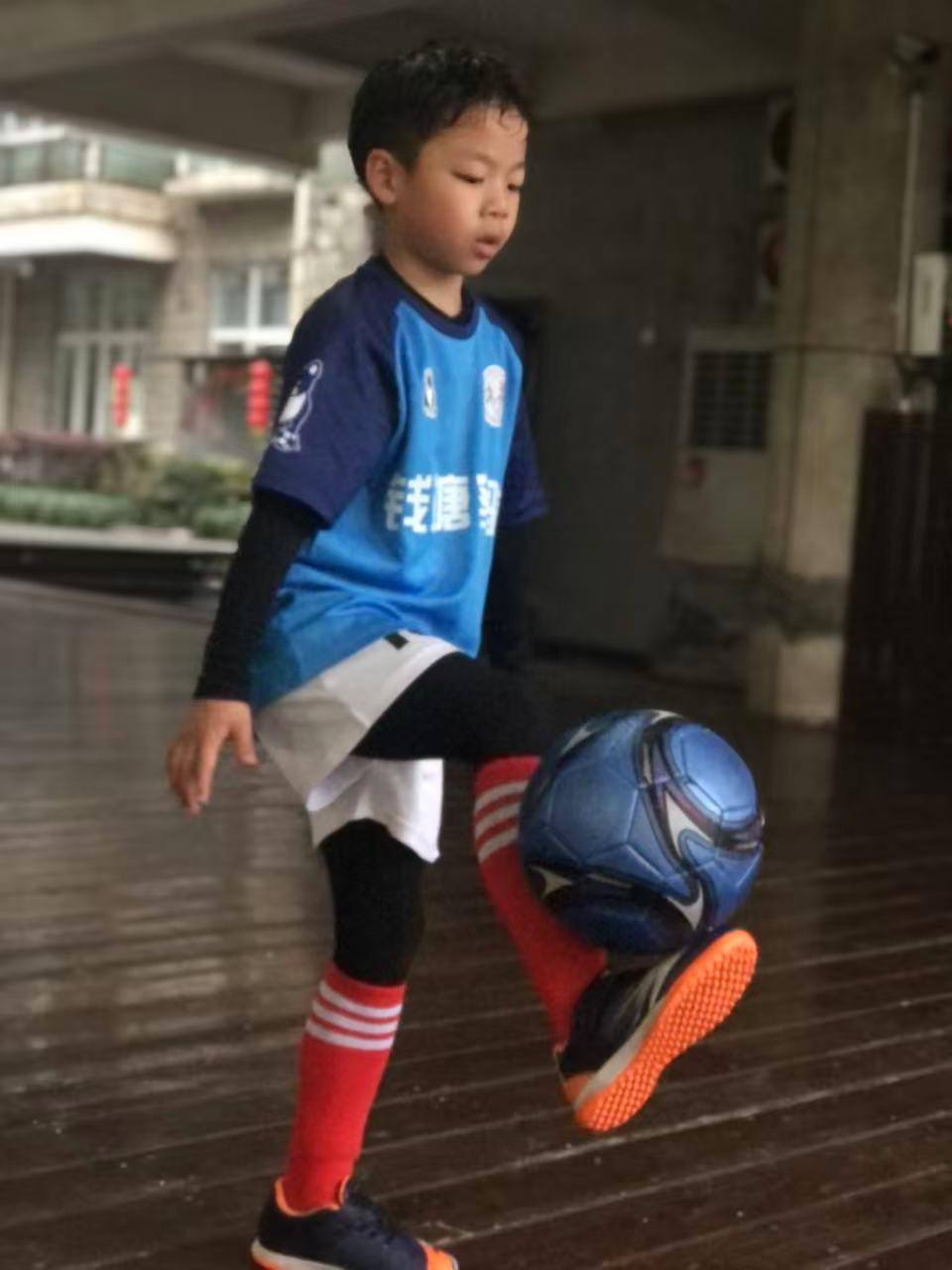 西兴小学刘书澈正在颠球
