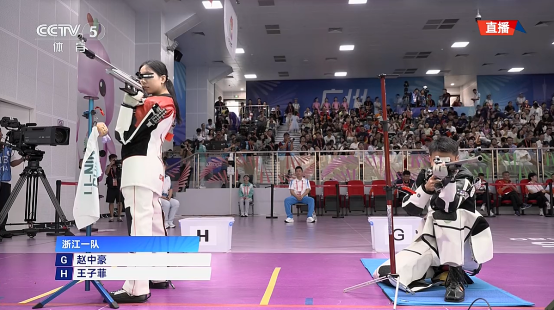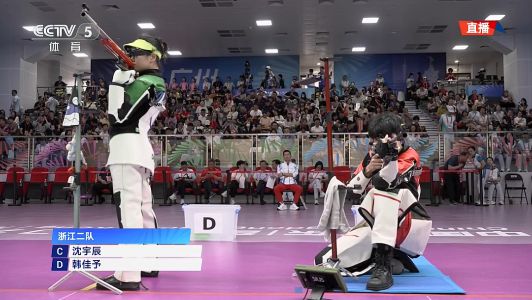浙江二队韩佳予/沈宇辰与浙江一队王子菲/赵中豪,分别以1185-64x和1179-80x的总成绩,成功会师金牌赛。这也意味着浙江队提前锁定该项目冠、亚军。