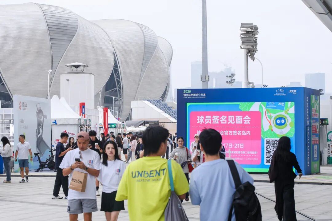 随着杭网影响力的不断提升,本届赛事也吸引了不少外地球迷前来打卡。双休日,江浙沪网球主题一日游,先去训练场地蹲签名,接着去特许商店,扫码领消费券后愉快买买买,拎着大包小包走进场地欣赏高水平赛事,最后在“好运集”运动市集吃吃逛逛,最终满意而归。