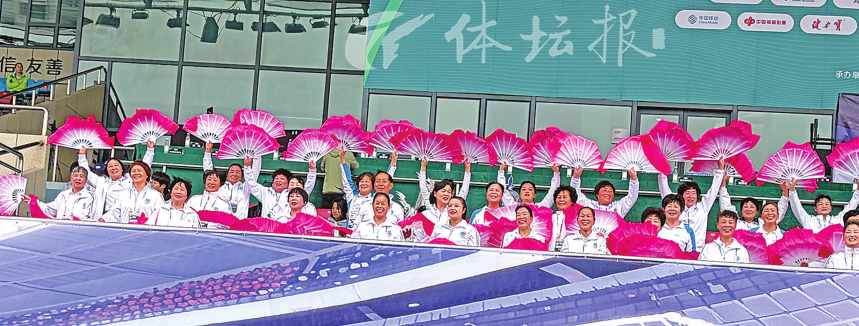 “吴越杯”舟山赛区的现场,当球员们为了每一个球权激烈拼抢时,看台的一角爆发出极具穿透力的呐喊声。那里没有震耳欲聋的铜鼓,也没有专业的扩音设备,只有一群身着整齐粉色队服、手持木兰扇的老人。这是由舟山市木兰拳协会会长缪新珠带领的30余名队员。平均年龄近70岁,最大的82岁——这群本该在公园慢悠悠打太极的“银发木兰”,此刻却成了赛场上最燃的“粉色风景线”。