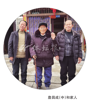 詹昌成出生在一个普通农村家庭,经历了抗日战争、解放战争;年老时感受到改革开放后生活的巨变。如今,他膝下的9个儿女都健在,可以说是子孙满堂。