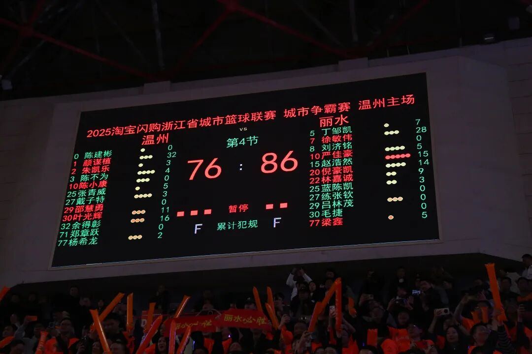 末节决战,双方对抗升级,场上节奏也不断加快。丽水队倪豪凯展现强劲个人能力,跳投进球,温州队颜谋植拉杆命中,两队核心球员上演强强对话,比赛精彩不断。徐敏伟爆发,攻防两端表现积极,他的稳定输出让丽水队更具主动。颜谋植延续此前火热手感,三分命中,帮助温州队奋力追分。丽水队在领先优势下,更加游刃有余,打出了自己的节奏。颜谋植远投三分,同时制造犯规,罚球命中,温州队在落后局面下始终没有放弃,努力缩小分差。徐敏伟如有神助,强势三分回击,丽水队成功顶住对手反扑,以86∶76赢得比赛。