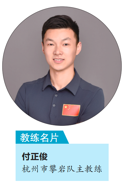 攀岩也需要好的“脚力”:脚法是讲究在攀爬中脚步动作的运用,包括踩脚点、换脚等的技术,其中换脚的正确方法是要保证平稳,不增加手上的负担。以从右脚换到左脚为例,付正俊建议,先把左脚提到右脚上方,右脚以脚在支点上最右侧为轴逆时针转动,把支点左侧空出来,而体重还在右脚上;左脚从上方切入,踩点,右脚顺势抽出,体重再过渡到左脚。他提到,在平时可通过深蹲、弓步跳等动作提升腿部力量。“尤其是脚踝,”付正俊说,作为攀爬中维持身体平衡的重要关节,日常训练中对于脚踝的强化训练内容必不可少,诸如箭步蹲、提踵这类训练,会有效提升攀岩的运动表现。