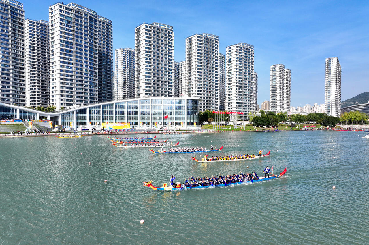 10月12日,2025年全民健身龙舟普及与推广活动暨中国·温州乡村龙舟大赛在温州龙舟运动中心举行。本次赛事汇聚了来自全国各地的46支龙舟劲旅、956名运动员,在村居组22人龙舟、村居组12人龙舟以及混合组12人龙舟三个组别中展开激烈角逐,演绎水上速度与激情。