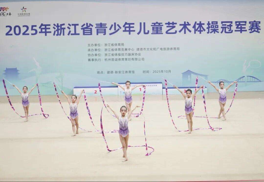 近日,2025年浙江省青少年儿童艺术体操冠军赛在建德新安江体育馆落下帷幕,来自全省37支代表队的近400名小运动员,带来了一场场精彩绝伦的视觉盛宴。