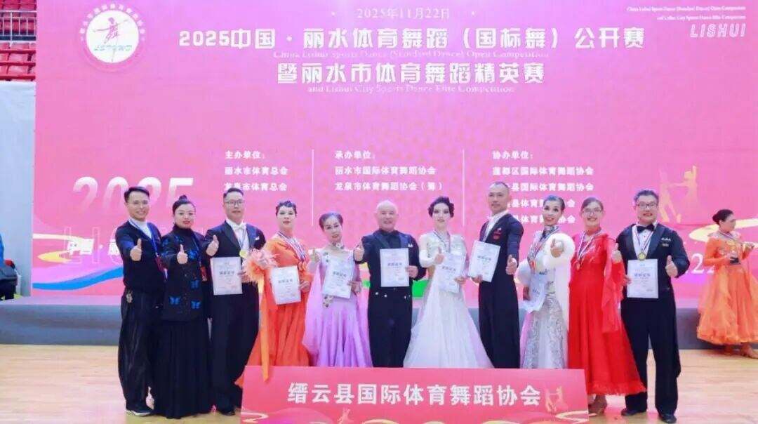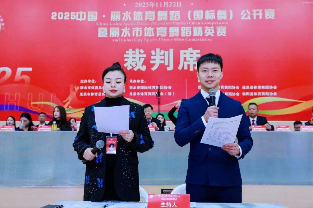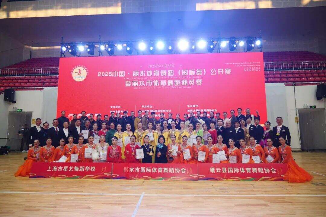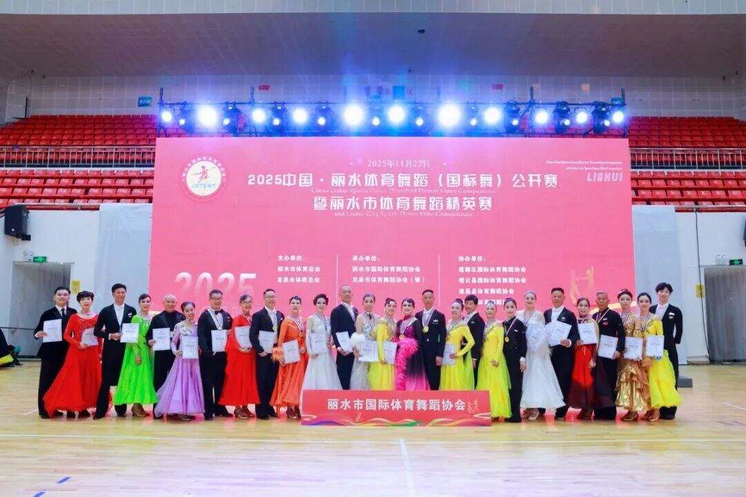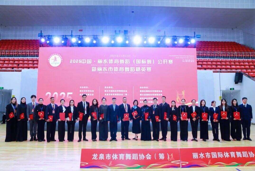 11月22日,龙泉体育馆内灯光璀璨、掌声雷动,由丽水市体育总会、龙泉市体育总会主办,丽水市国际体育舞蹈协会、龙泉市体育舞蹈协会(筹)、龙泉市君扬艺术培训有限公司联合承办的2025中国丽水体育舞蹈(国标舞)公开赛暨丽水体育舞蹈精英赛,在此圆满落下帷幕。
