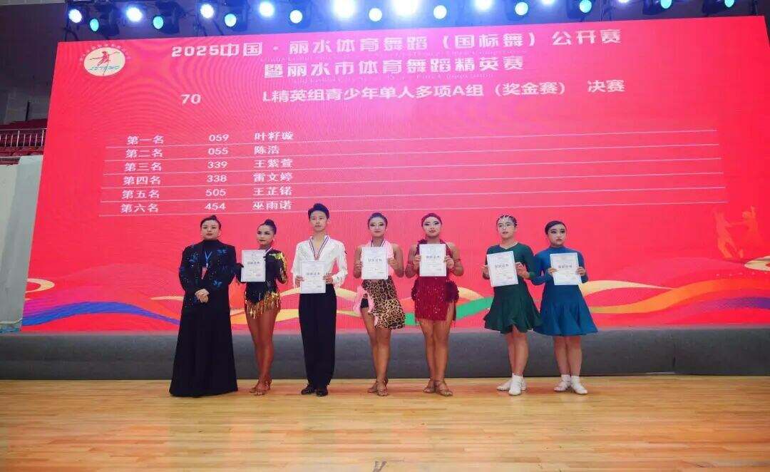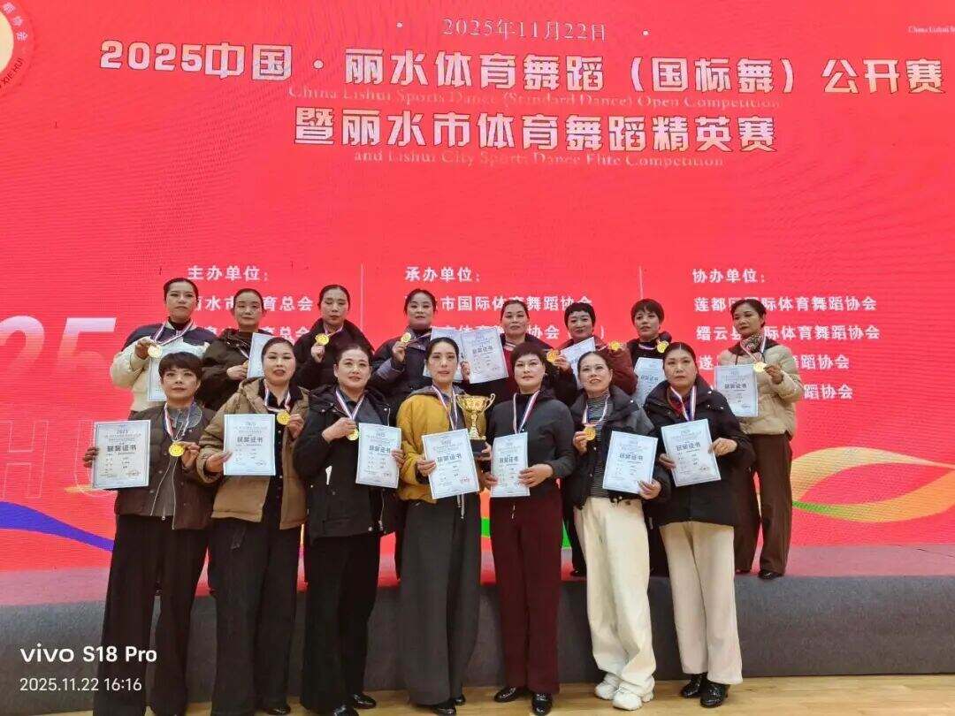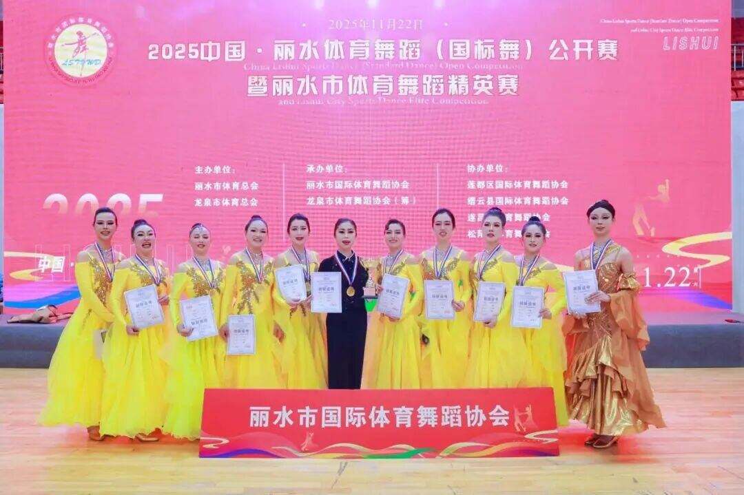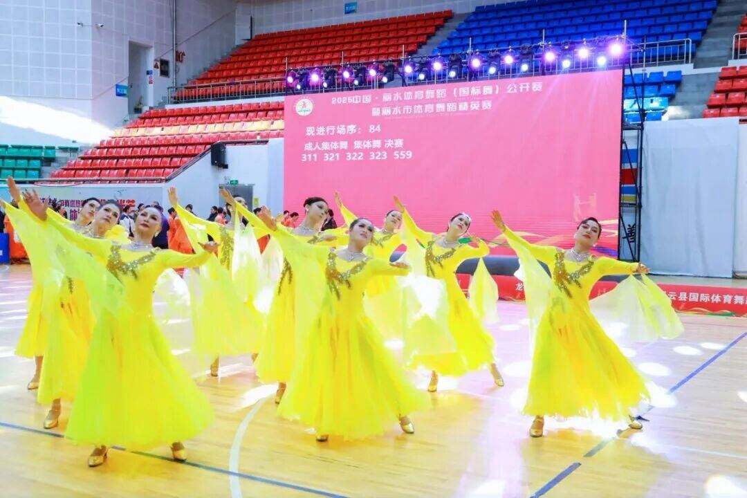 11月22日,龙泉体育馆内灯光璀璨、掌声雷动,由丽水市体育总会、龙泉市体育总会主办,丽水市国际体育舞蹈协会、龙泉市体育舞蹈协会(筹)、龙泉市君扬艺术培训有限公司联合承办的2025中国丽水体育舞蹈(国标舞)公开赛暨丽水体育舞蹈精英赛,在此圆满落下帷幕。