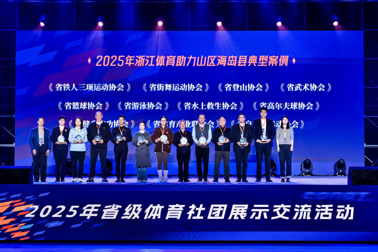 活动不仅是成果的展示台,更是精神的传承地。颁奖环节中,一个个荣誉的颁发,既是对浙江体育社团过去一年成绩的肯定,更是对未来发展的期许。省铁人三项运动协会、省街舞运动协会等11家单位获“浙江体育助力山区海岛县典型案例”表彰,他们通过16项赛事落地、6组结对帮扶,将体育资源送到山区海岛,为当地注入经济动能与体育活力,用实际行动践行“体育助力共同富裕”的使命;“省社会体育指导员志愿服务典型代表”与“全民健身志愿服务优秀案例”获得者登台领奖,作为浙江18万社会体育指导员的缩影,他们扎根社区、乡村,用专业指导让科学健身理念惠及更多群众;省健美(操)协会、省冰雪运动协会等4家单位获“2025年浙江省体育社团超级联赛典型案例”荣誉,其创新赛事模式为体育项目普及提供了“浙江经验”。