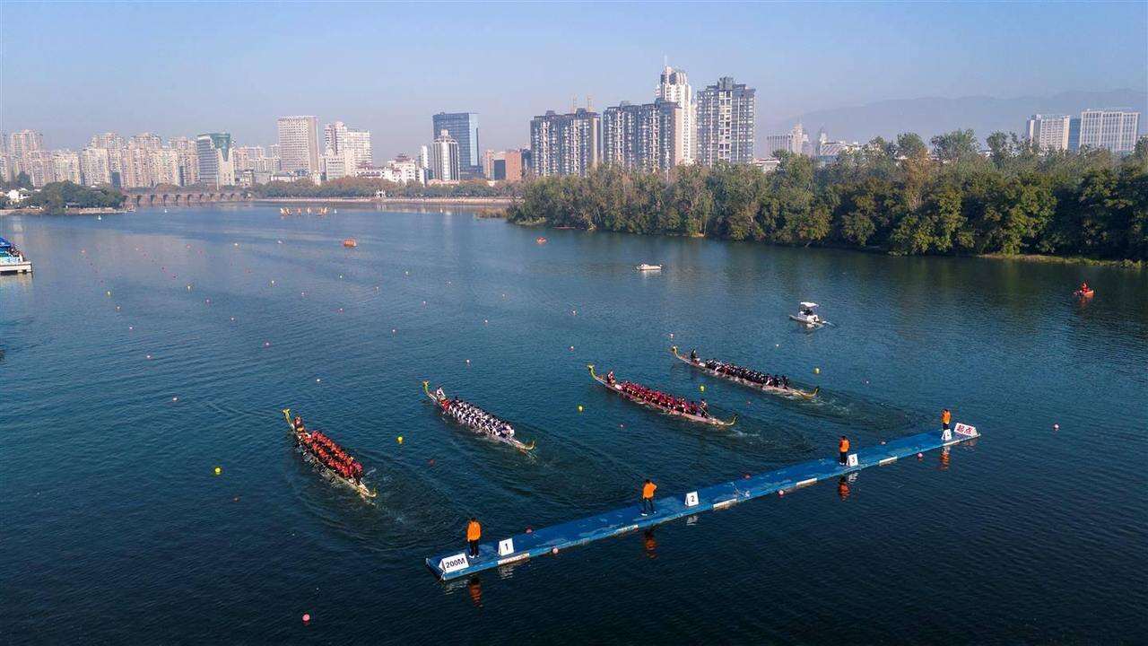 初冬的金华,在祥瑞的期盼中沐浴着和煦阳光,气温的回升仿佛为一场水上盛会注入了澎湃的激情。11月29日,备受瞩目的2025金华市龙舟邀请赛在市区三江六岸燕尾洲段河道擂响战鼓。与往年不同,本届赛事首次聚焦“本土力量”与“青春传承”,打造了一场真正属于八婺大地的龙舟嘉年华。