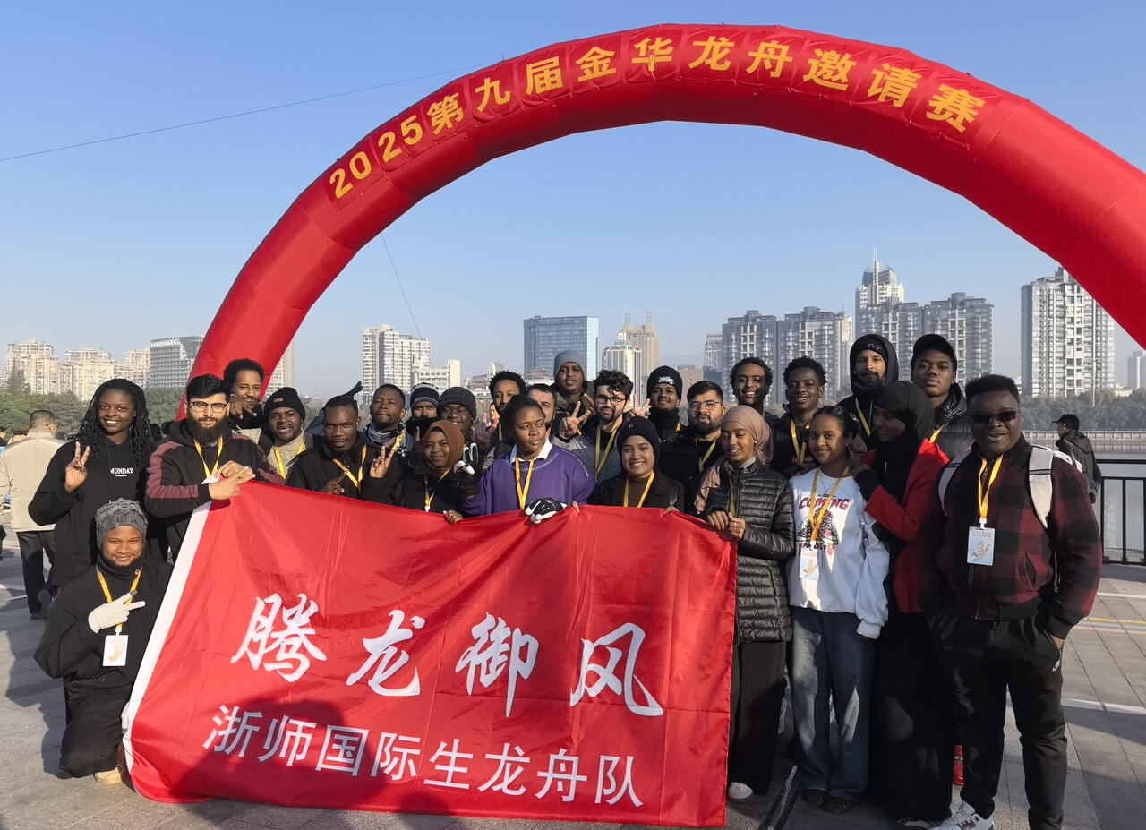 本届赛事所有参赛运动员均来自金华市下属各县(市、区),旨在深度挖掘本土龙舟文化底蕴,为各区县的龙舟爱好者提供一个纯粹、高水平的交流与竞技平台,让扎根于八婺土壤的龙舟运动焕发新的生机。两支浙江师范大学的国际留学生龙舟队受邀进行表演赛。来自全球各地的留学生们同舟共济,在金华的水道上挥桨击水,不仅为比赛增添了浓厚的国际文化交流氛围,也成为金华城市开放与包容的生动注脚。本土情怀与国际视野在此刻完美交融,奏响了一曲“各美其美,美美与共”的和谐乐章。