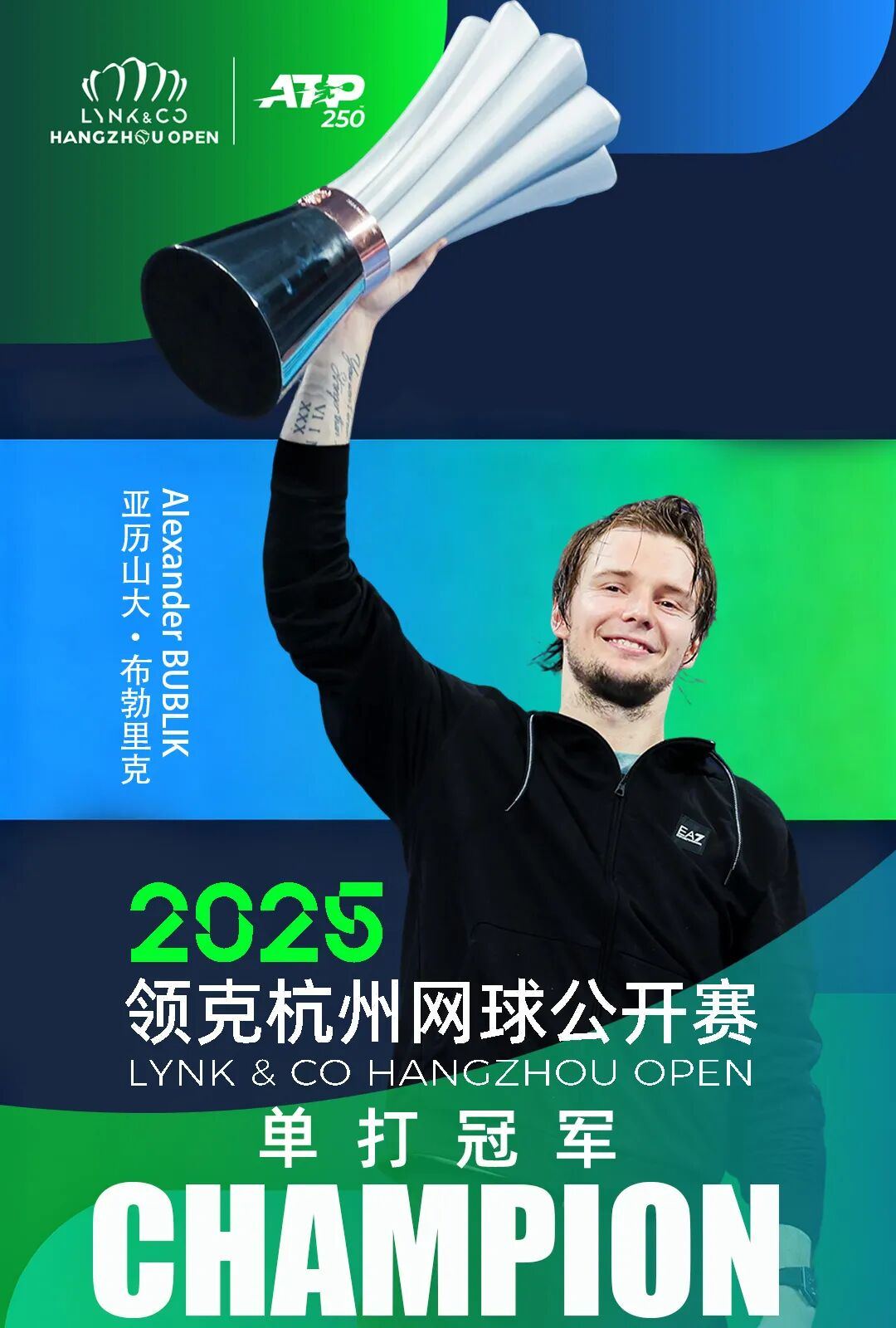 这是布勃里克第一次在中国拿到冠军,他表示,开启中国赛季之前,他还有些伤病,甚至不确定能不能来到杭州,“这是我第一次来到杭州,很庆幸,我在杭州打了出色的比赛。感谢大家!我要把我的冠军奖杯送给三岁的儿子。”