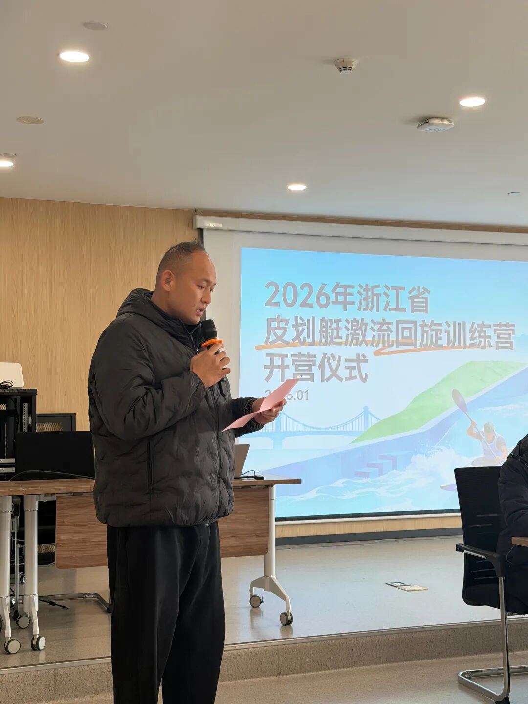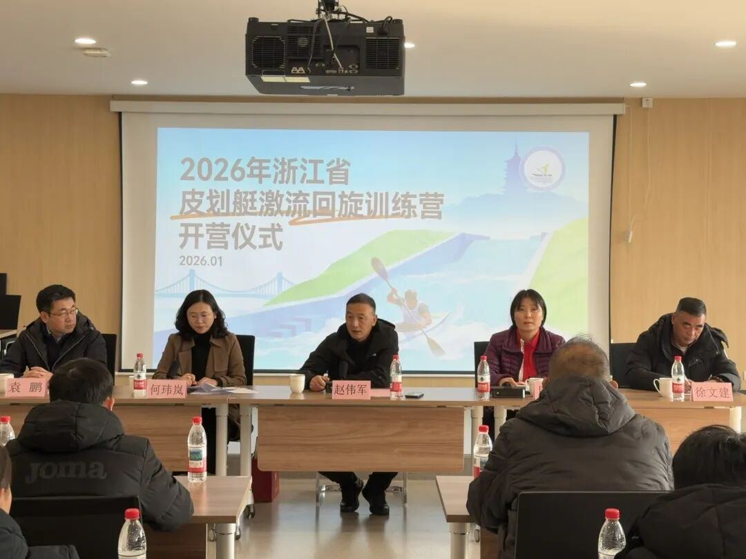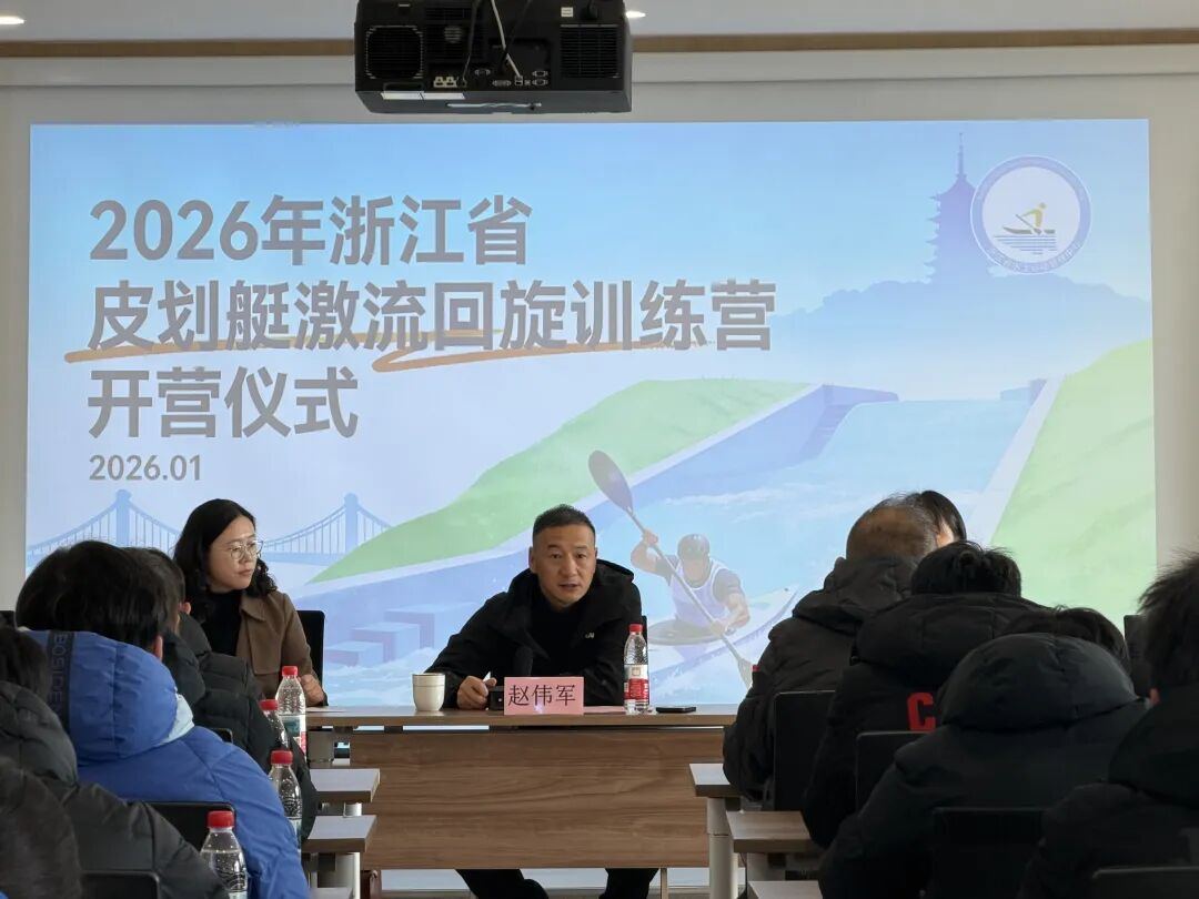 1月16日,浙江省皮划艇激流回旋训练营在富阳水上运动中心正式开营。本次集训共为期15天,旨在助力浙江激流回旋项目人才选拔和后备梯队建设。省水上中心党总支书记、主任赵伟军,杭州市体育局竞技体育处处长陈莹,省水上中心办公室主任何玮岚、训练竞赛科科长徐文建,上海体育大学竞技运动学院副院长袁鹏教授等嘉宾出席开营仪式。