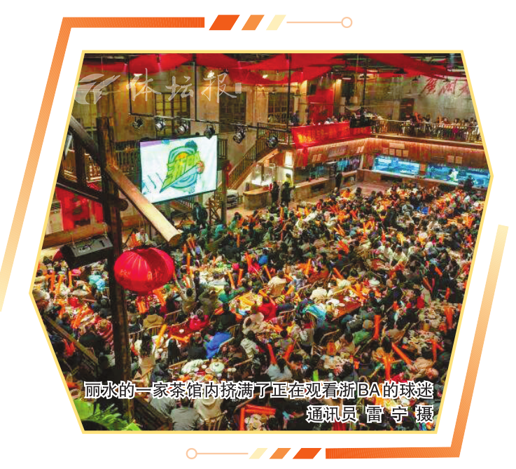 丽水的一家茶馆内挤满了正在观看浙BA的球迷 通讯员 雷 宁 摄