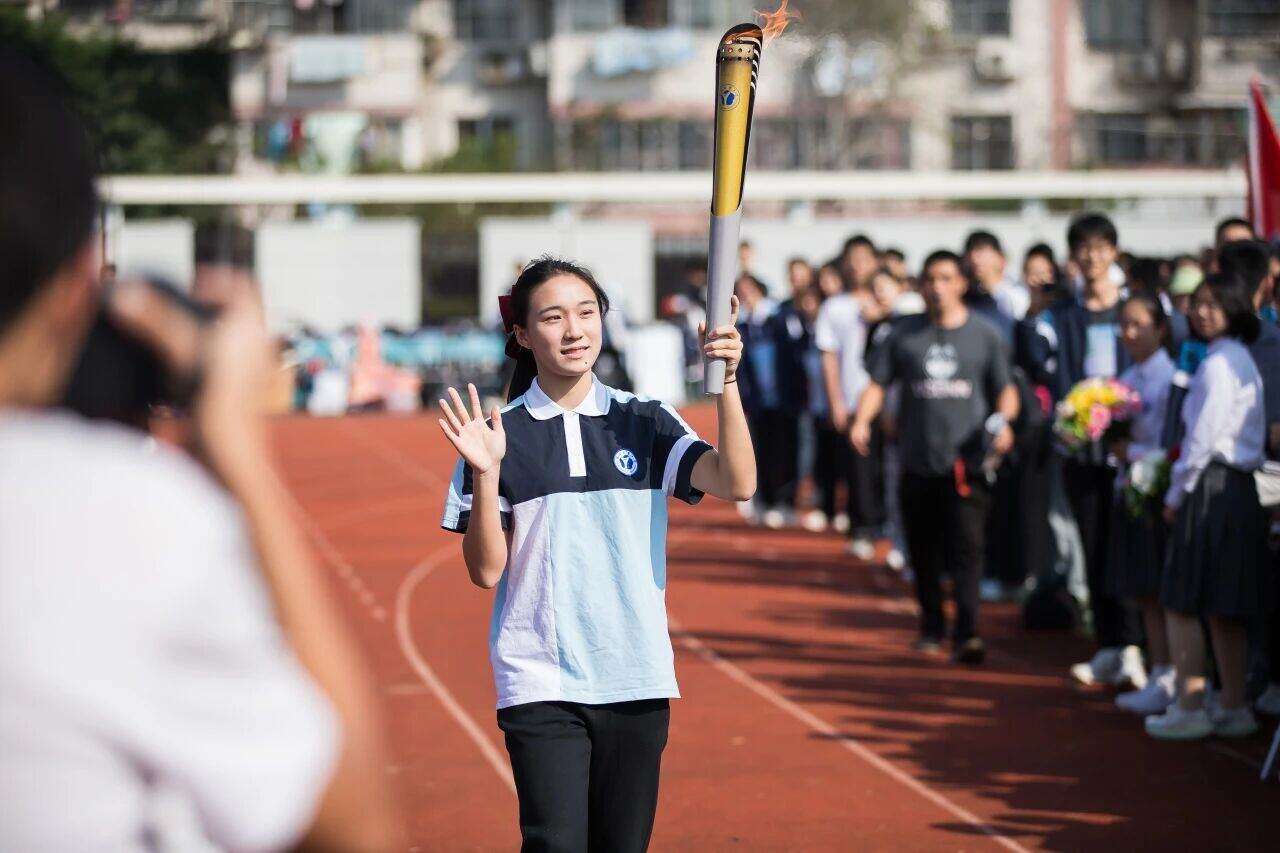 陈妤颉在效实中学第67届田径运动会上参与火炬传递。受访者供图