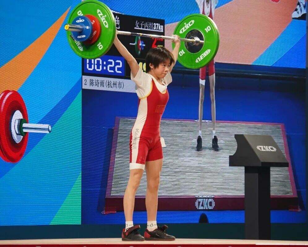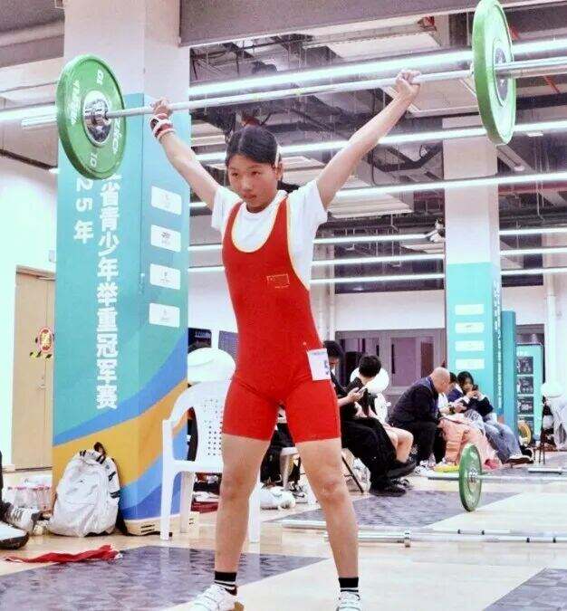 举重台背后,是少年们用汗水浇灌的日复一日。来自台州的13岁女孩谢耔妤每周训练6天,坚信“吃得苦中苦,方为人上人。”在枯燥而强大的力量训练中,队友间的鼓励成为重要支撑:“我们会相互指出对方技术动作的不足之处,大家一起进步。也会一起看优秀运动员的比赛视频,特别激励人。”电视屏幕中的热血画面与训练场的杠铃片交织,点燃了他们内心的火焰。