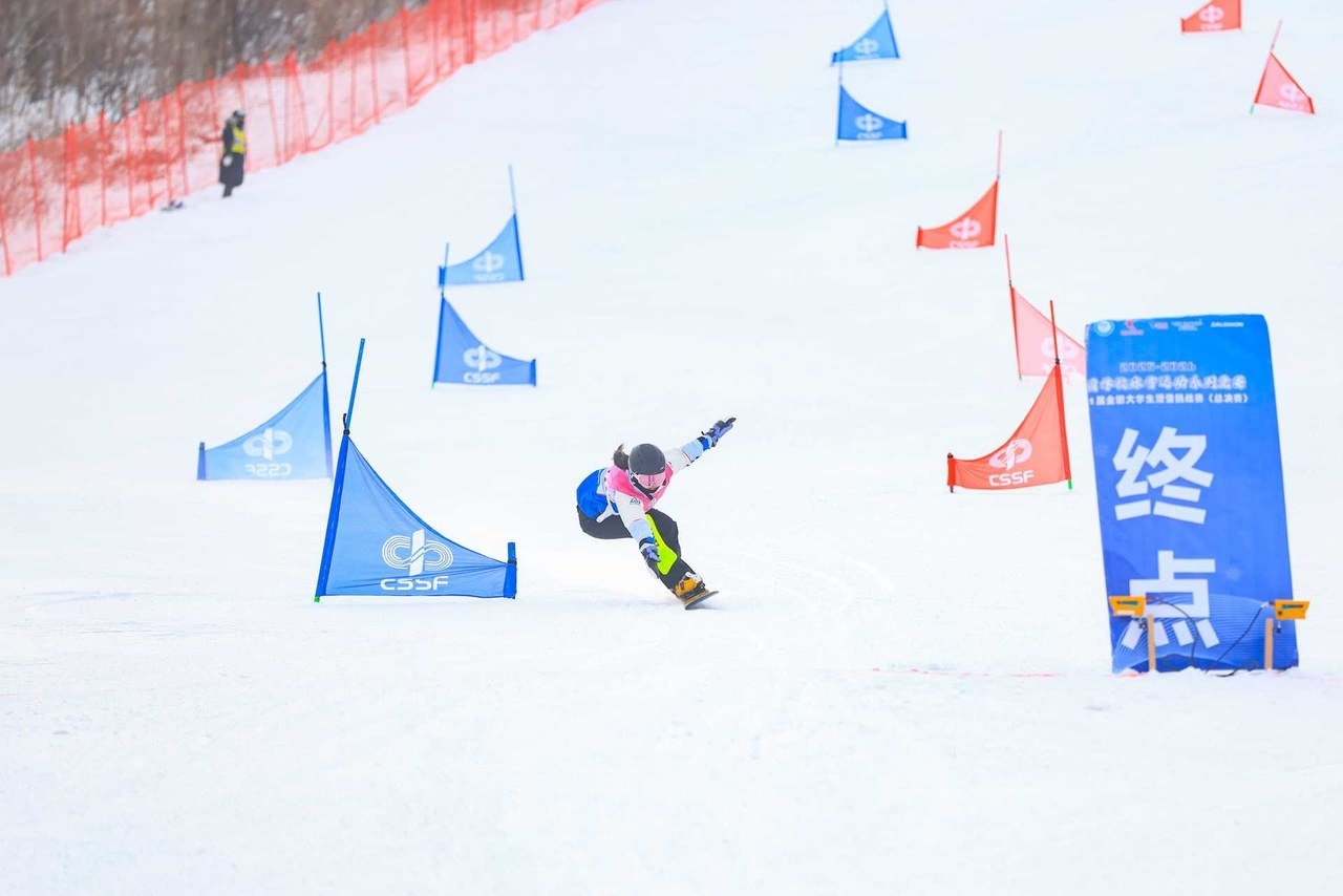 1月18日,单板平行大回转项目率先开赛,此次总决赛采用红蓝道双发对决的赛制。浙大队员林子茜沉着应战,凭借扎实的训练功底,在滑行中精准把控身体平衡,转弯、冲刺环节一气呵成,最终以绝对优势斩获单板平行大回转女子甲组冠军,为浙大打响头炮,并凭此优绩锁定2027年第33届长春世界大学生冬季运动会的参赛资格。