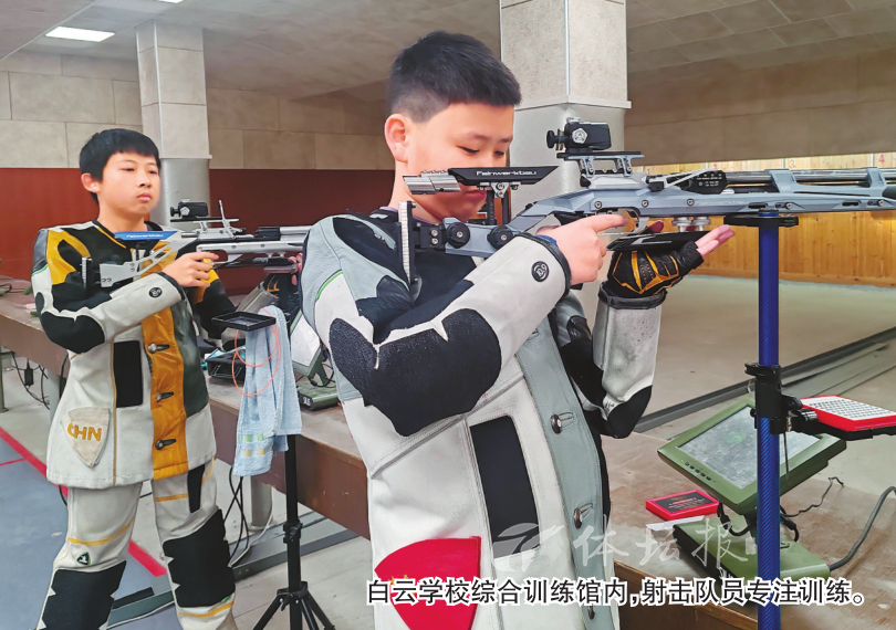 在白云学校射击综合训练馆,教练员何佳浩正专注指导队员,只见射击小将在凝神屏息间,瞄准、扣扳机的动作一气呵成。这支成立于2008年的队伍,起步时仅有一名教练和十余名队员,曾用钢管当模拟枪、沙瓶练稳定,赴外地借场地训练更是家常便饭。直至2018年,白云学校新射击馆落成,40台最新电子靶到位,训练才步入正轨。即便如此,这支队伍保持了“届届省运夺金”的纪录。上一届省运会斩获7金7银4铜,此后几年在国内外赛事中累计夺得金牌51枚。“2026年省运会我们是东道主,压力也是最大动力。”何佳浩坦言肩头担子不轻。目前,射击队规模达百人,队员们每天结束射击训练后,还要加练跑步、跳绳、平板支撑等体能项目,只为在省运赛场上再创佳绩。14岁的姜梓棋自5年级进入射击队以来,这已是他历经的第三次冬训。“今年要冲击省运会,所以即便训练强度不断加码,我也顶得住。”姜梓棋说,自己以奥运冠军杨倩为偶像,“希望能向她看齐,未来进省队、国家队。”