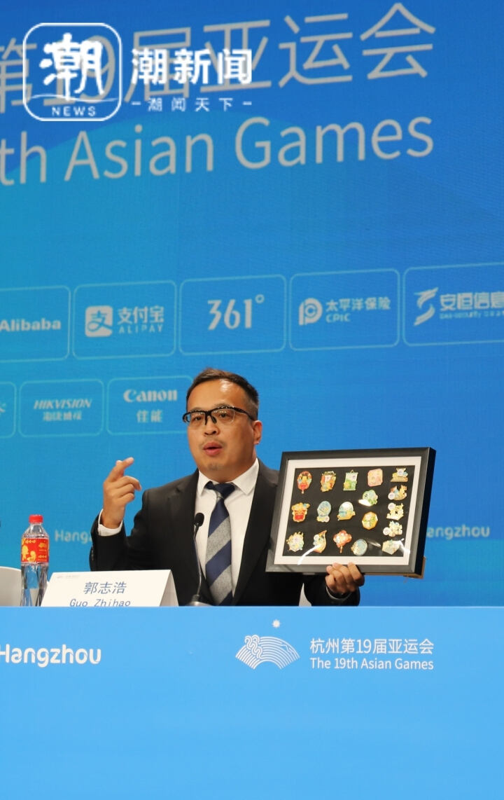 10月5日,在杭州亚运会“创新市场开发 赋能亚运盛会”主题新闻发布会上,杭州亚运会特许生产企业杭州孚德品牌管理有限公司CEO郭志浩,讲述了“断货王”徽章创作背后的故事。
