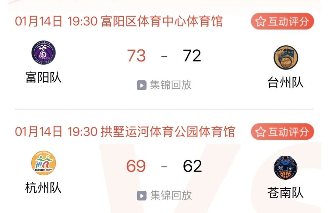 1月14日晚,浙BA八强交叉淘汰赛(主客场三局两胜制)第一轮继续进行。今晚杭州队VS苍南队,富阳队VS台州队。最终,杭州队、富阳队获胜。
