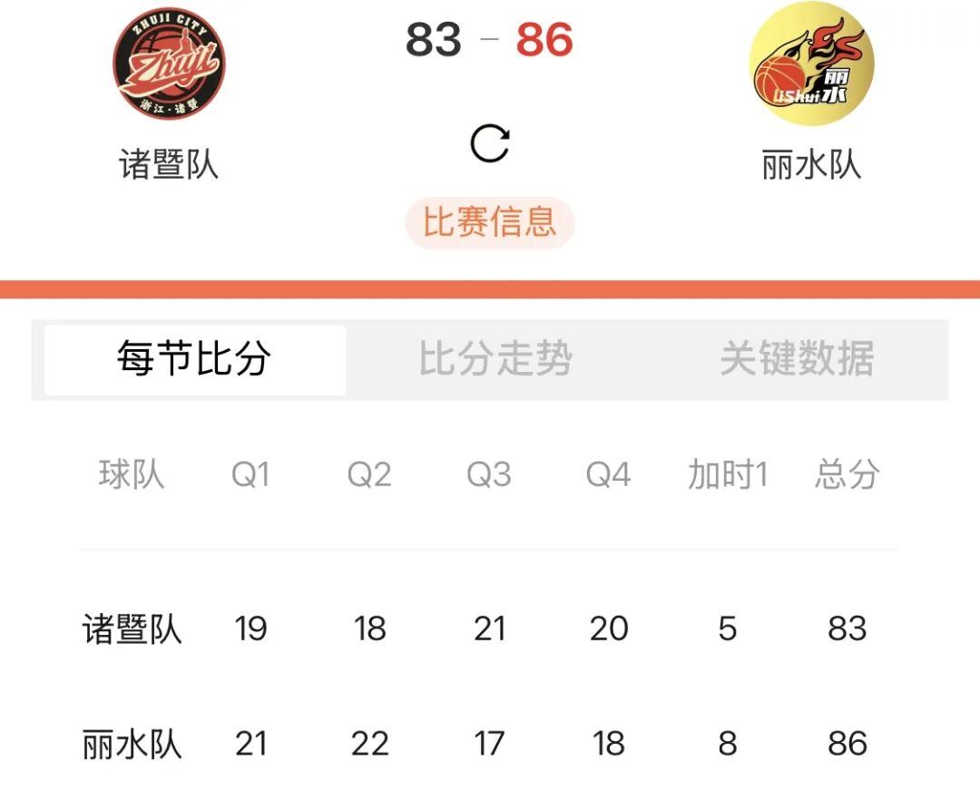 诸暨 83∶86 丽水