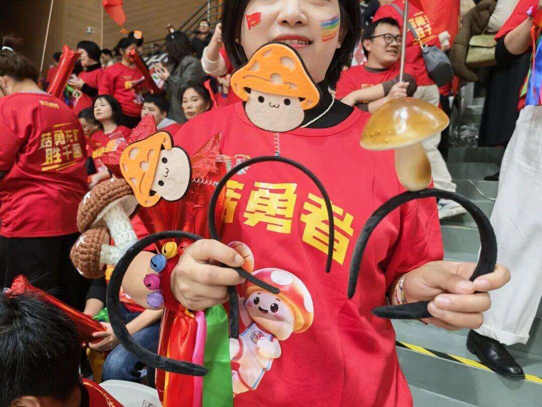 浙BA庆元队从城市争霸赛开始就以“菇勇者”精神火出了圈,记者注意到,不少庆元球迷头上都戴了非常可爱的香菇头箍。吴婷婷说:“从浙BA开始到现在,我们的香菇发饰也是更新过三代,因此球迷头上的香菇也是各式各样。”