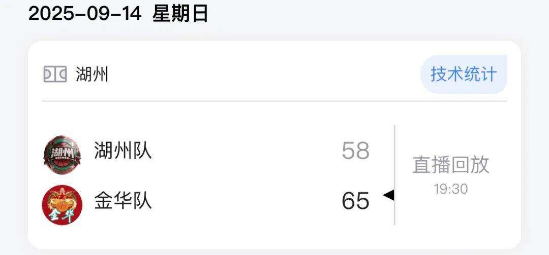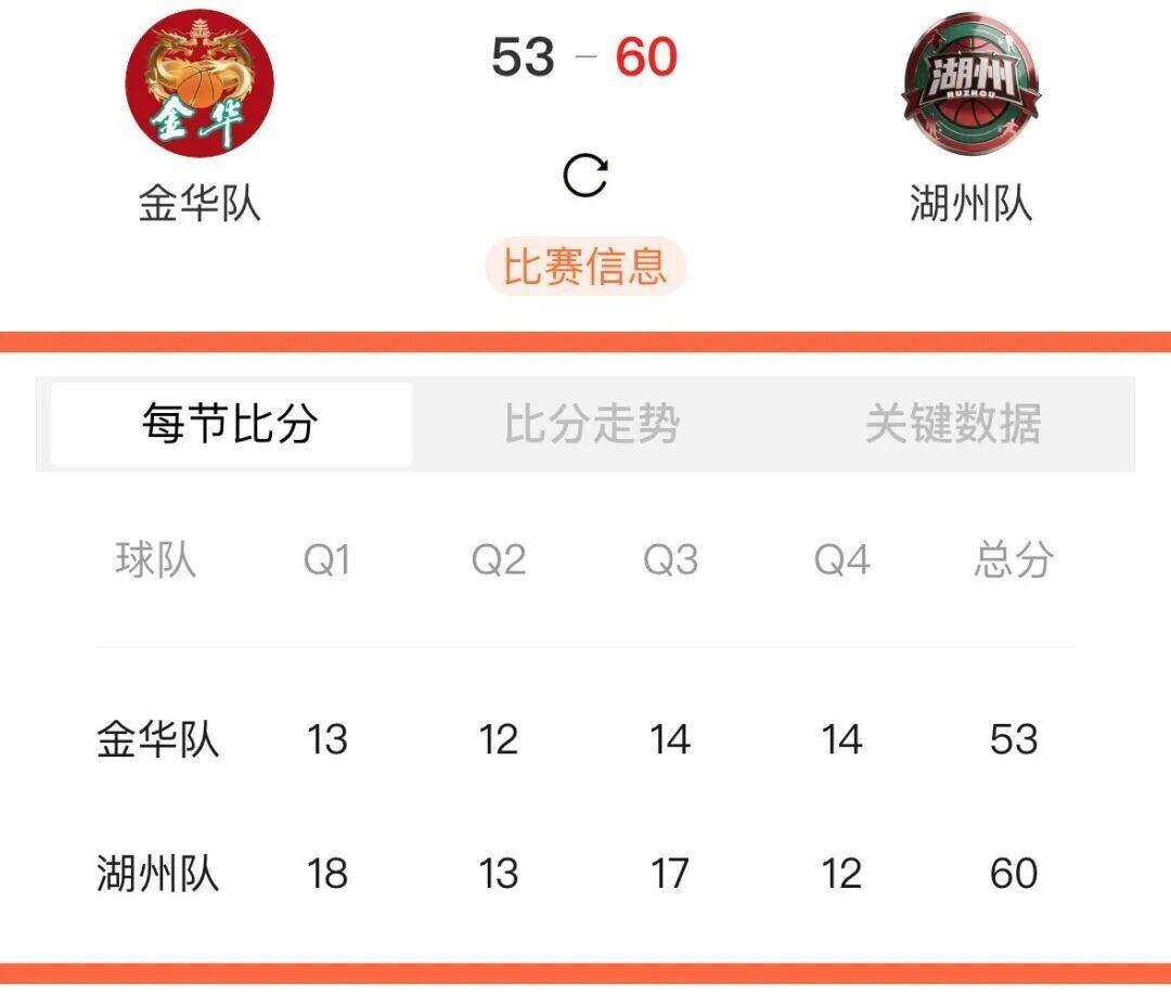 本场比赛后,金华队的战绩为7胜7负积21分,湖州队的战绩为6胜9负积21分。比赛精彩瞬间↓
