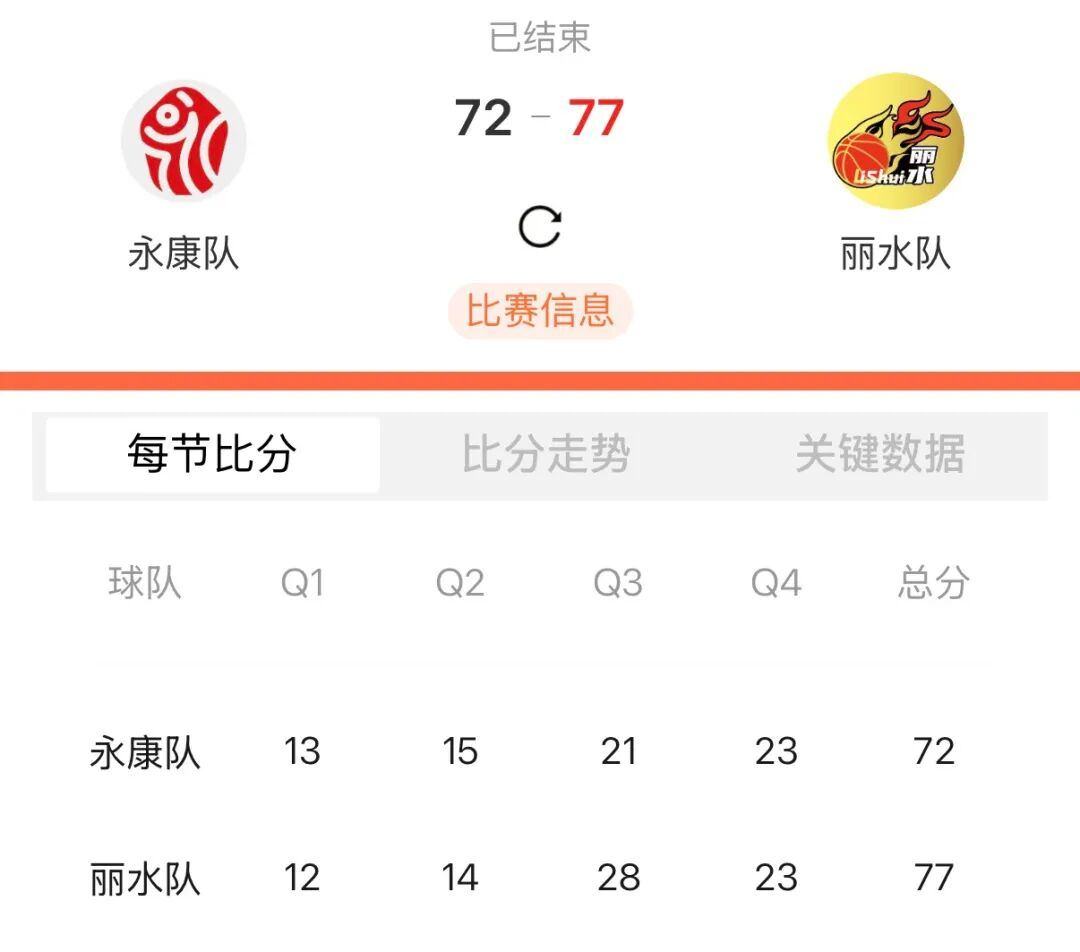 本场比赛后,永康队的战绩为11胜4负积26分,丽水队的战绩为12胜4负积28分。