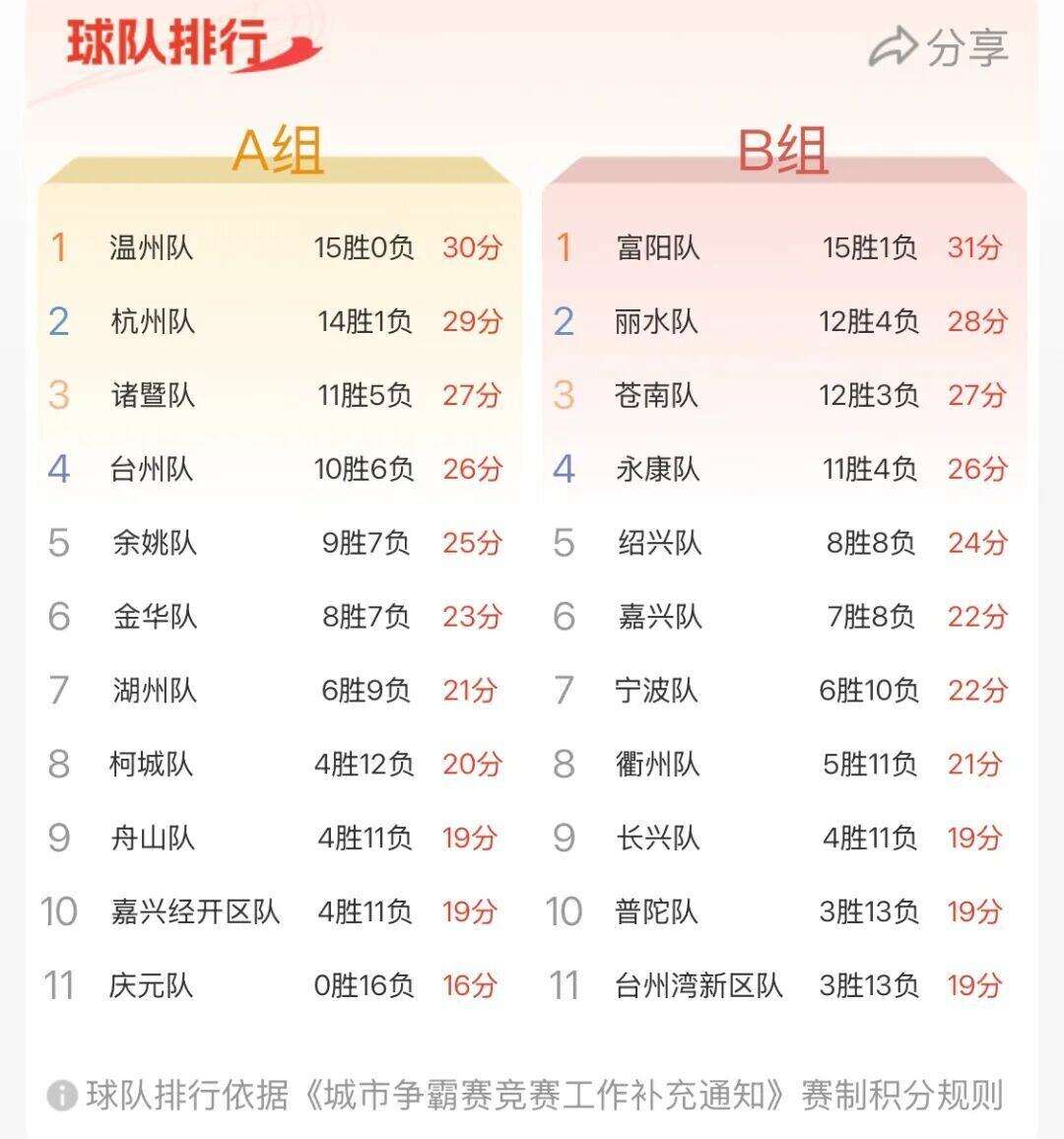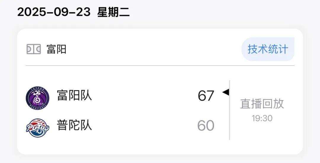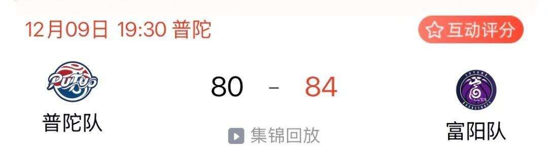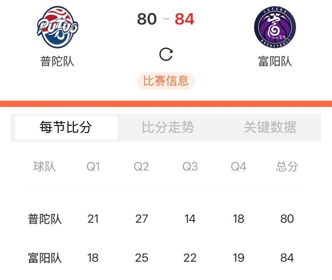 本场比赛后,普陀的战绩为3胜13负积19分,富阳的战绩为15胜1负积31分。