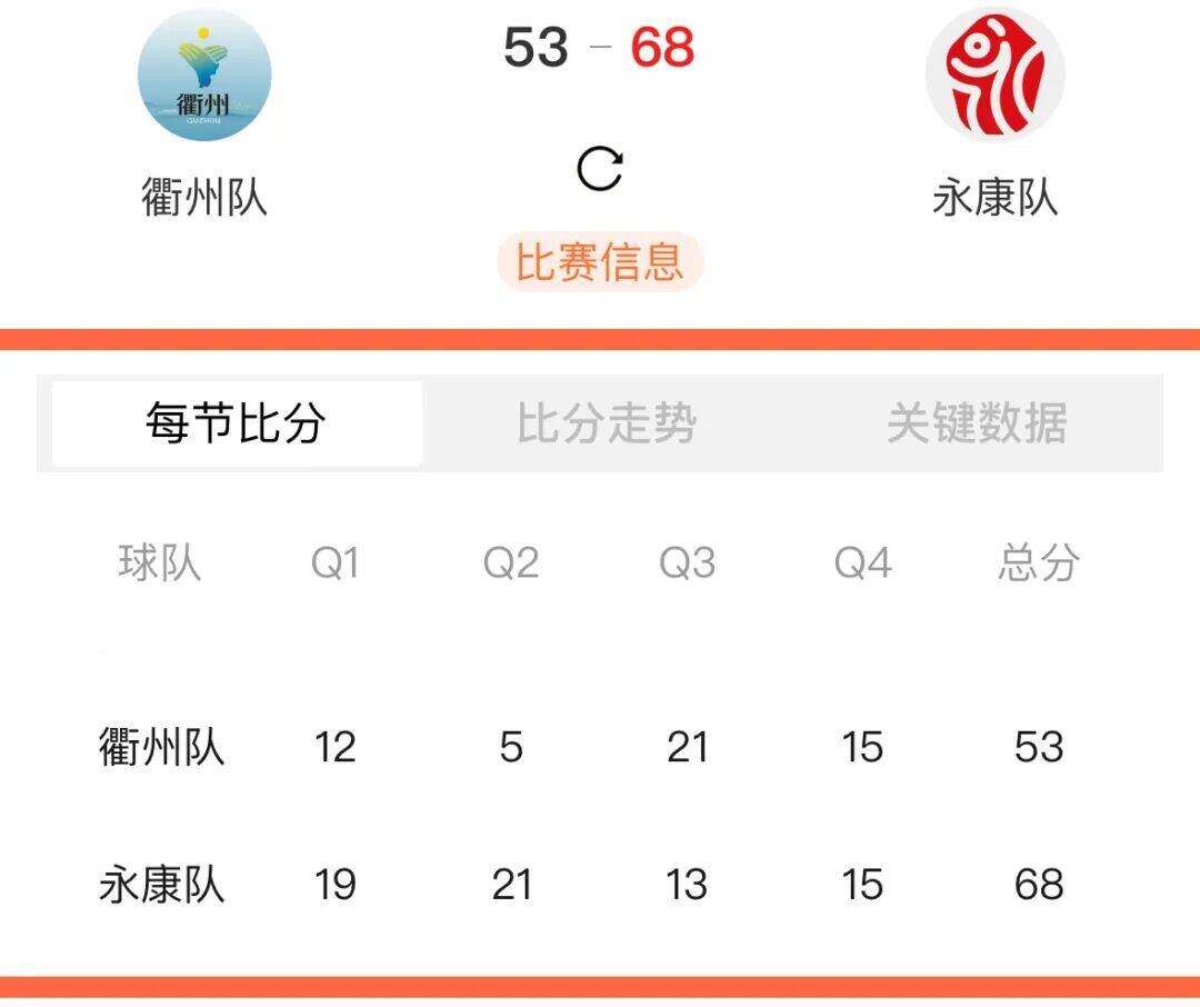 本场比赛后,衢州队的战绩为5胜12负积22分,永康队的战绩为12胜4负积28分。