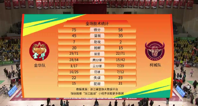 金华75:58柯城 金华胜!
