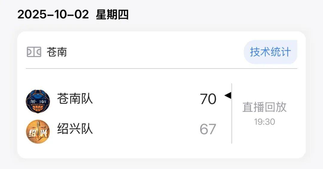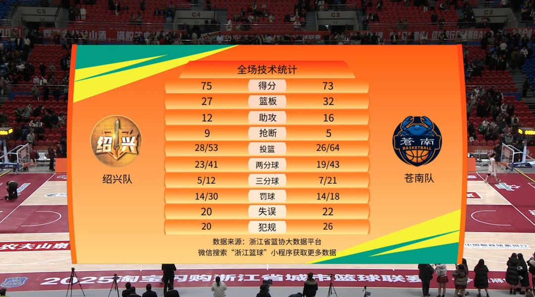 绍兴75:73胜苍南