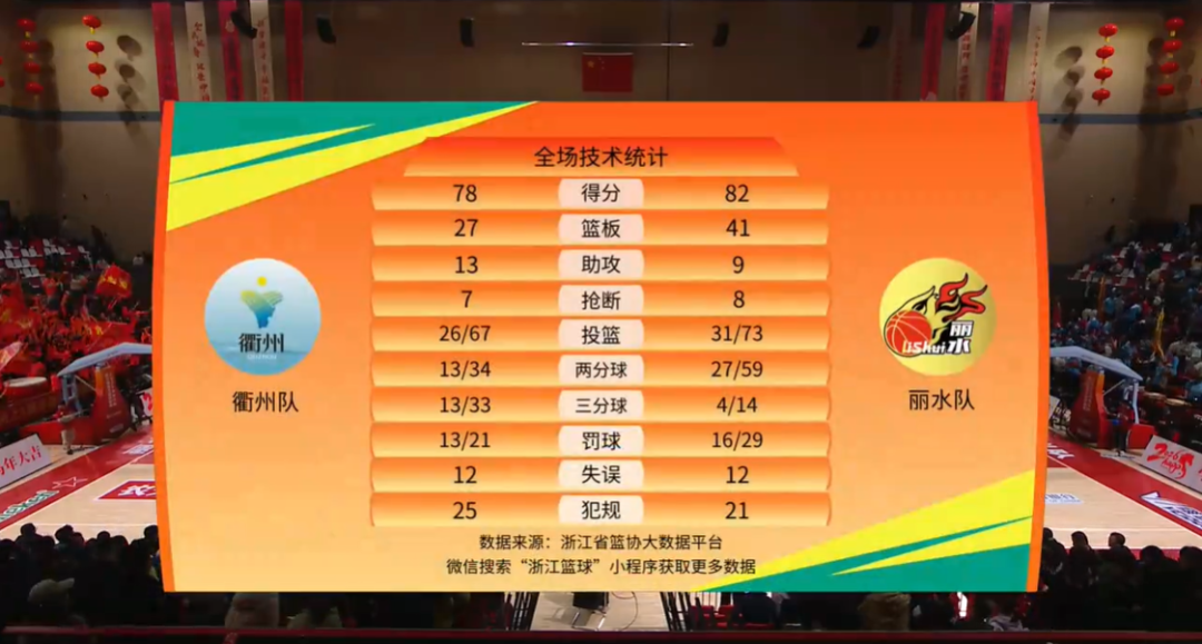 本场比赛后,衢州队的战绩为6胜13负积25分,丽水队的战绩为14胜4负积32分。