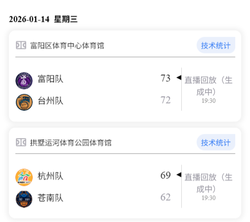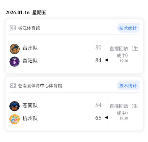 1月16日晚,浙BA八强交叉淘汰赛第二轮继续进行。今晚苍南队VS杭州队、台州队VS富阳队。最终,杭州队、富阳队获胜。