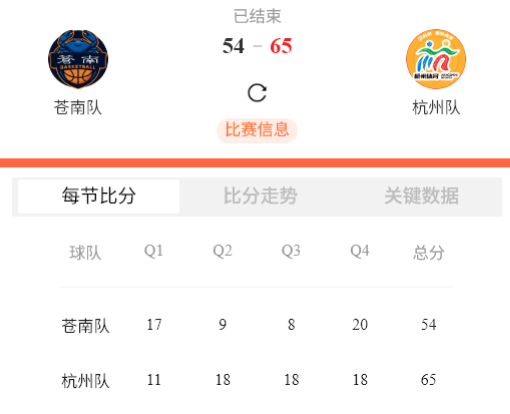 苍南 54∶65 杭州