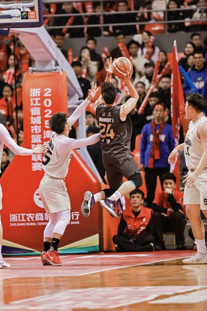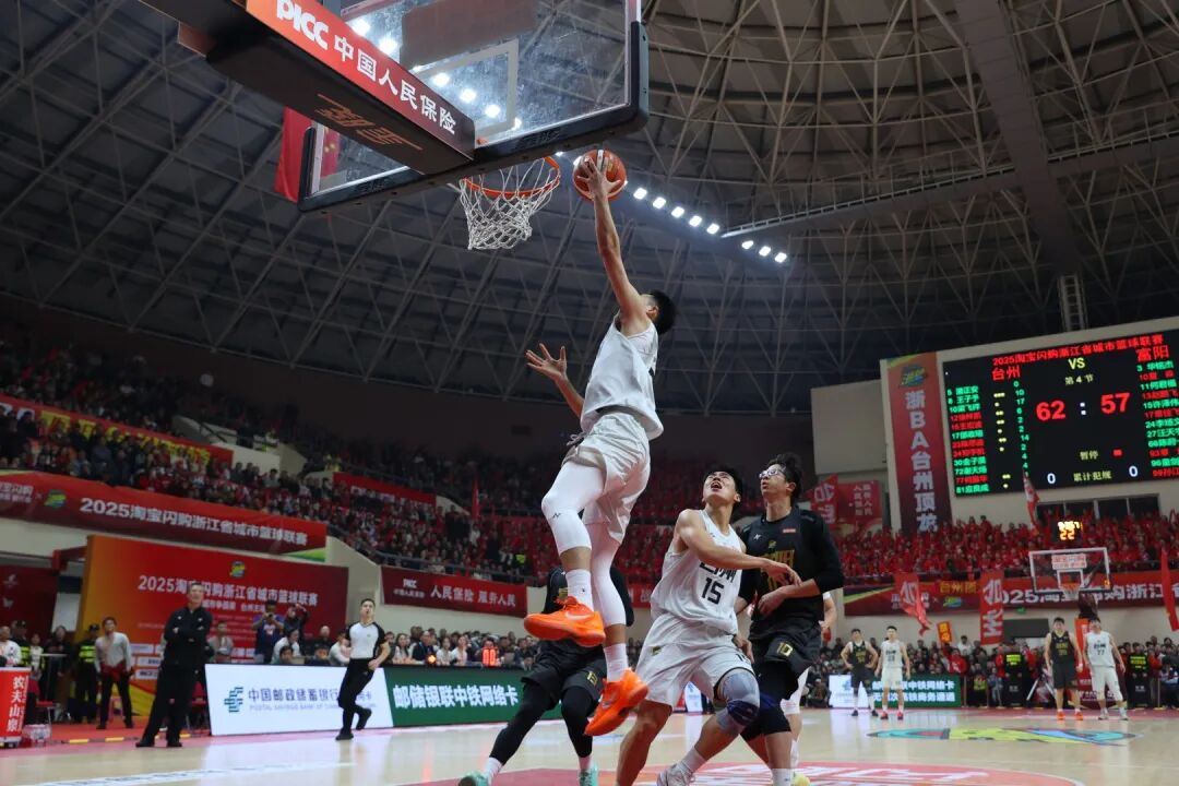 下半场是决定生死的拉锯战。台州队外线手感暂时冷却,富阳队抓住机会连得6分。随后双方攻防节奏陷入胶着,失误增多,比赛进入白热化。关键时刻,台州队邵政瑄反击上篮得手,梁飞祥命中止血三分,三节战罢台州队以60:57夺回领先优势。