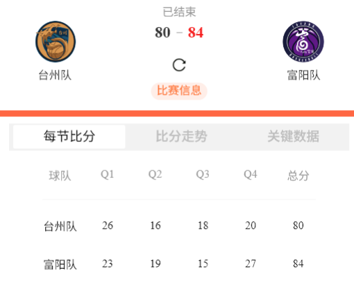 台州 80∶84 富阳