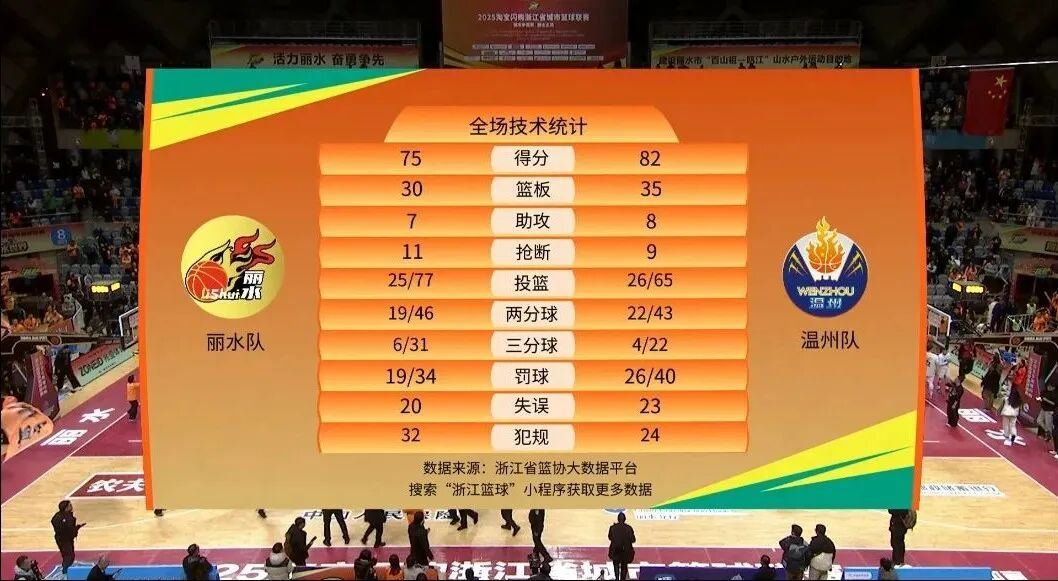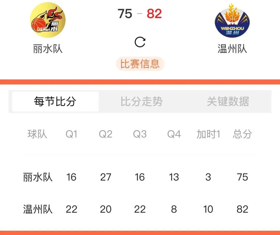 丽水 75:82 温州