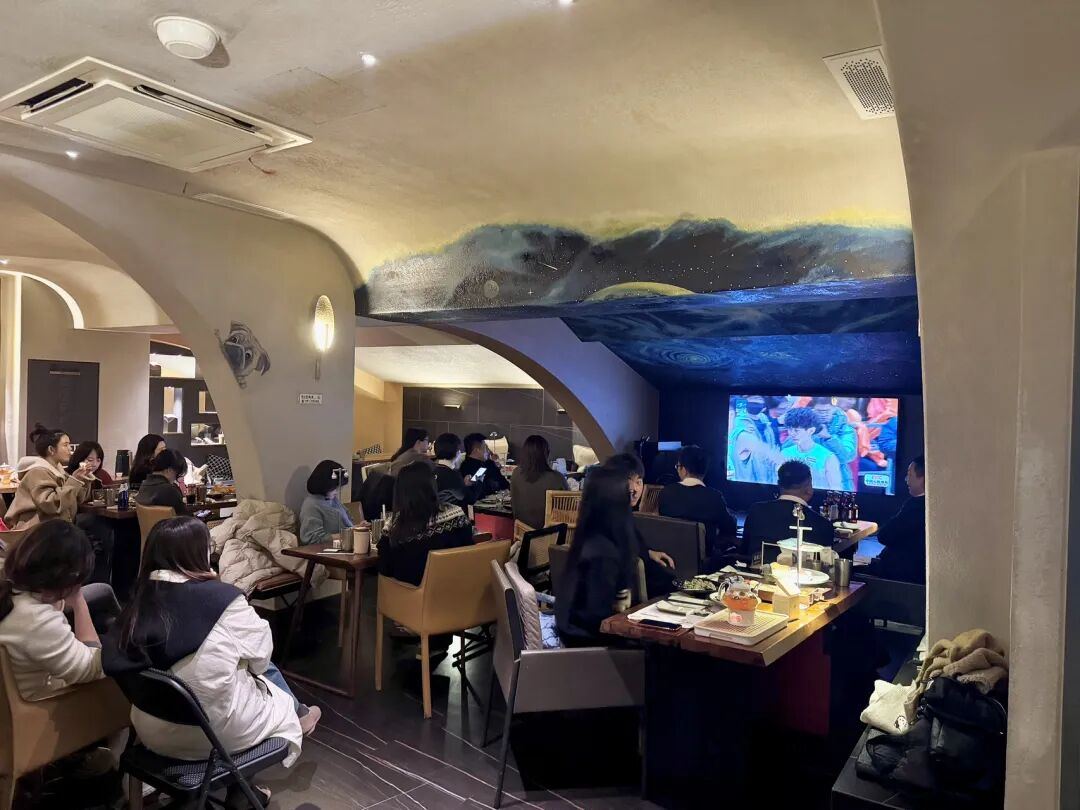 场内精彩,场外也同样热闹。没抢到票去现场观赛的球迷朋友在各处为自己的主队加油呐喊。据了解,莲都区有多个“第二观赛点”,其中包括继光街茶馆、诚磊咖啡、丽水万地国际影城等多个热门场所。其中,诚磊咖啡就在丽水体育中心体育馆边上,店长告诉记者,今晚的位置就预约满了。“现场氛围非常好,每逢比赛日都有很多球迷来看球,我自己也是丽水本地人,希望我们的球队可以走得更远。”