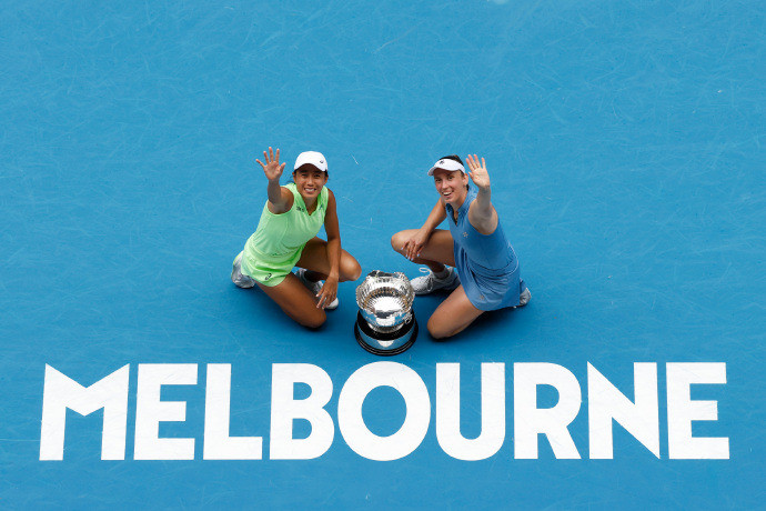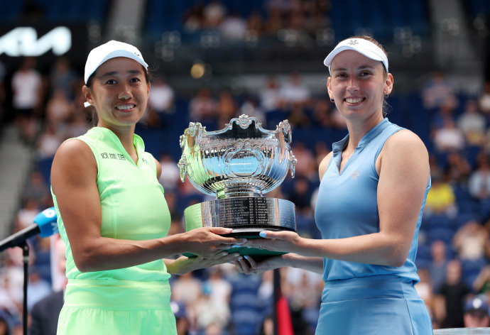 北京时间1月31日,2026年澳网女双决赛中,4号种子张帅/梅尔滕斯直落两盘击败7号种子达尼丽娜/克鲁尼奇,获得冠军。