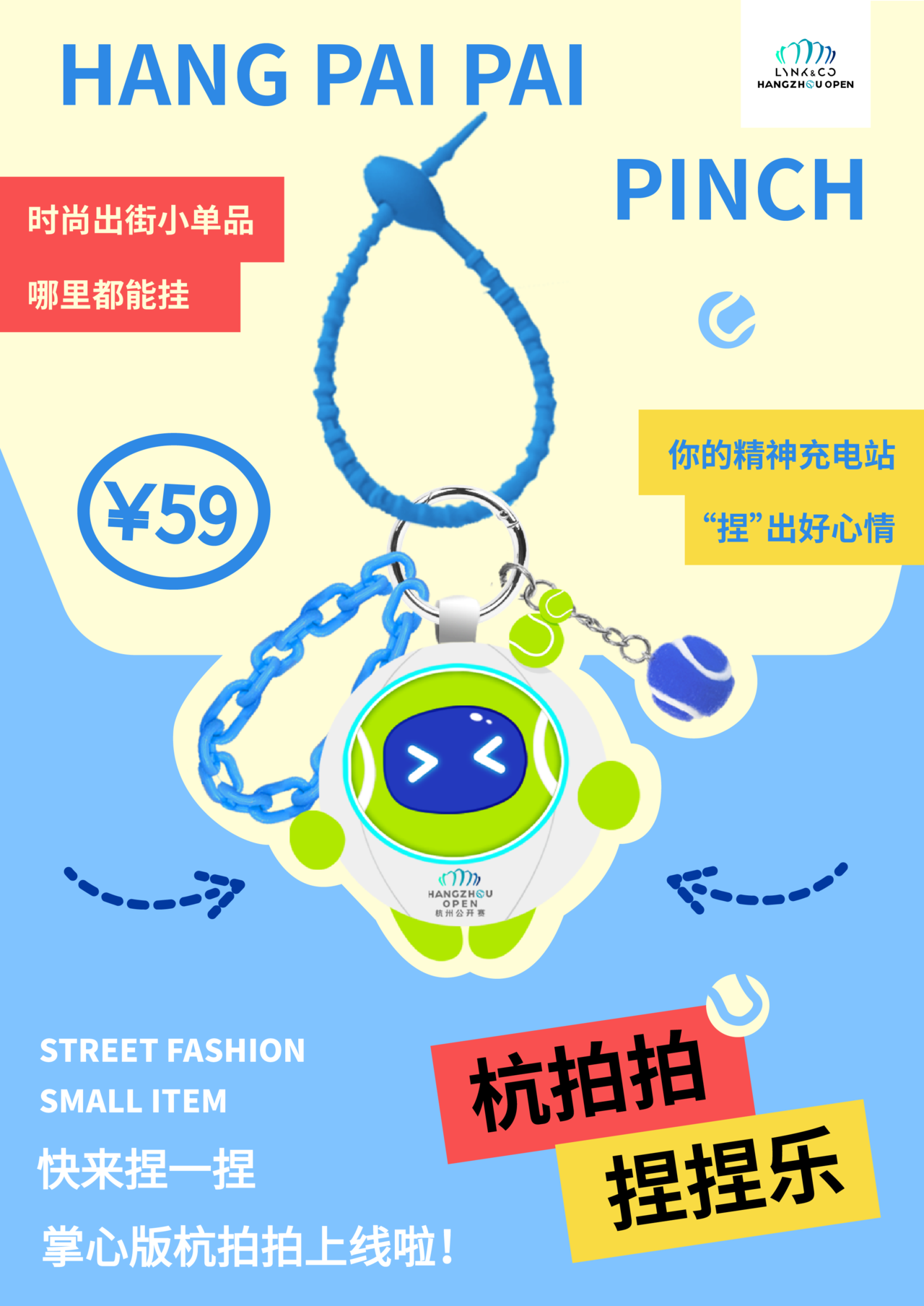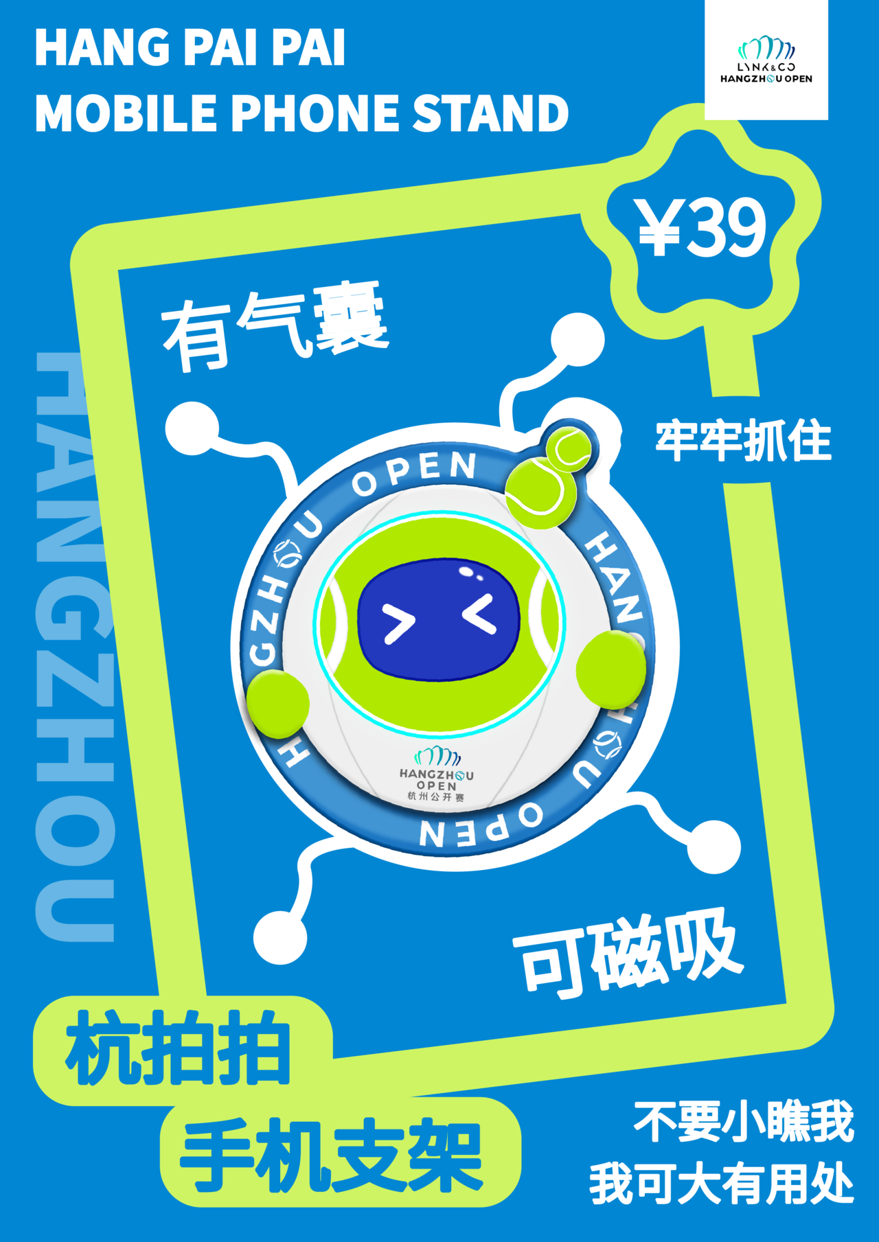 本次官方周边,以“杭拍拍”形象和网球运动为核心元素,包括吉祥物限定系列和网球限定系列,集网球赛事元素和生活化功能为一体。包括毛绒玩具、徽章、冰箱贴、挂饰、飞织包、大抱枕等萌趣周边,让体育精神、网球元素和日常生活紧密融合,让运动成就美好!