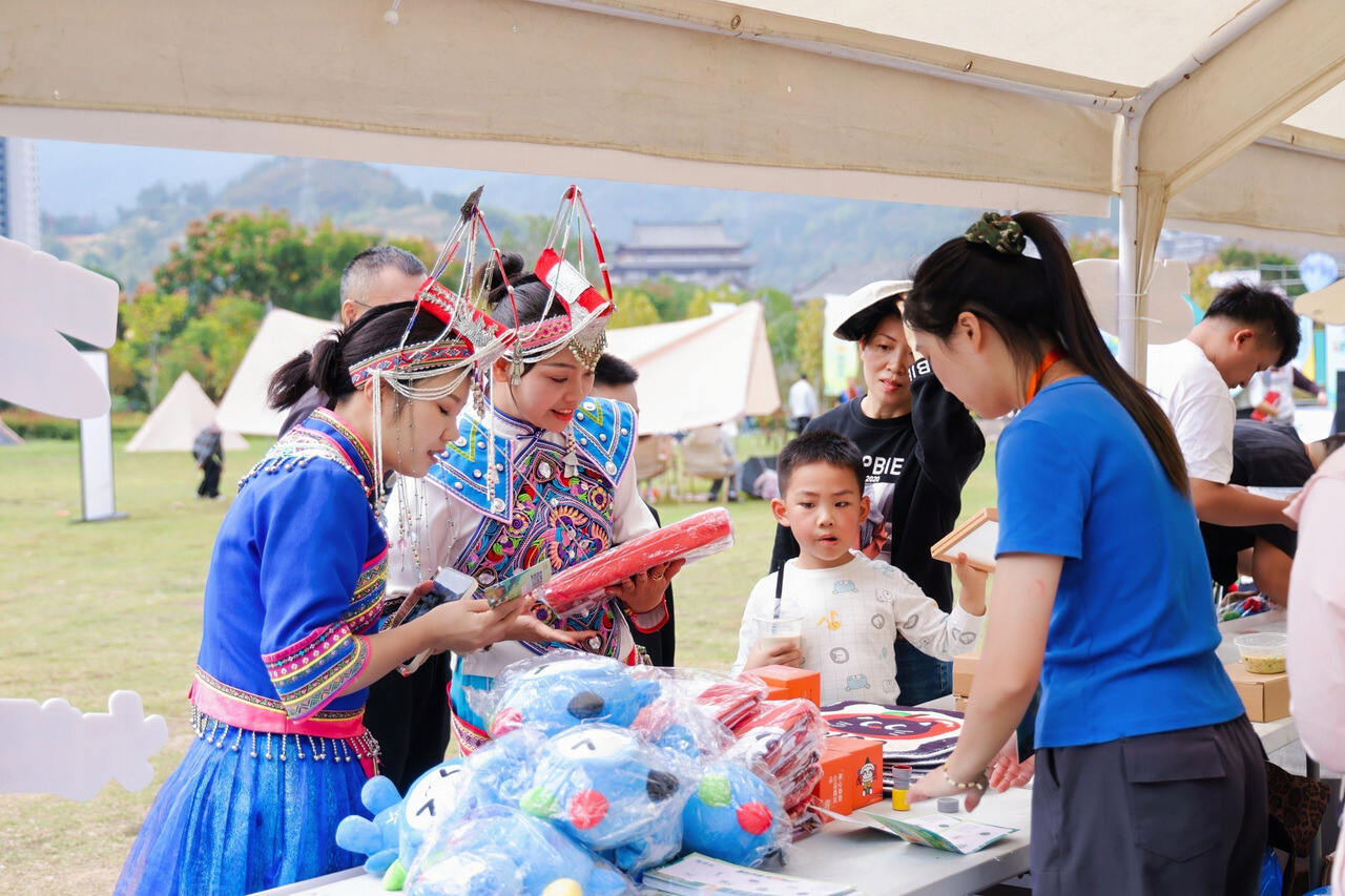 在畲乡特色市集,“畲乡运动币”备受青睐——参与者通过完成现场挑战获得运动币,可兑换现场特色美食。乐队在草坪舞台唱响,台下观众一边品尝美食,一边规划游玩行程,形成“日间运动竞技、夜间文化休闲”的全时体验链条。