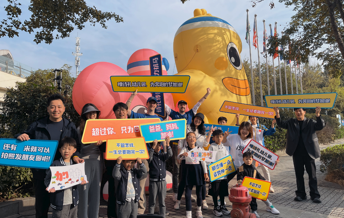 赛道旁,自发前来助威的市民随处可见。在闻涛路上,唯诗礼幼儿园的孩子们化身“小小加油团”,举着彩色手牌,用稚嫩的声音为每一位经过的跑者呐喊鼓劲,这个充满童真的“萌系补给站”,成为赛道上一抹温暖的风景。