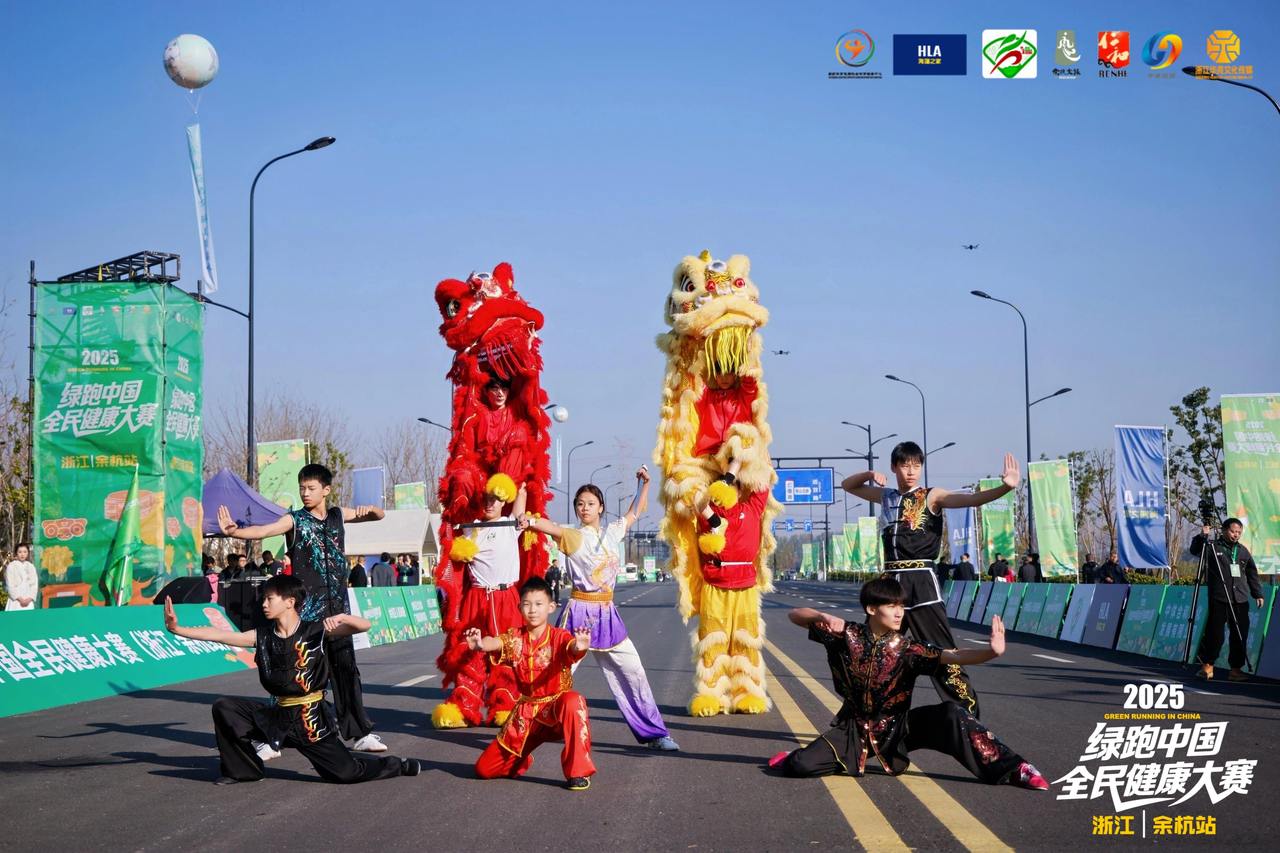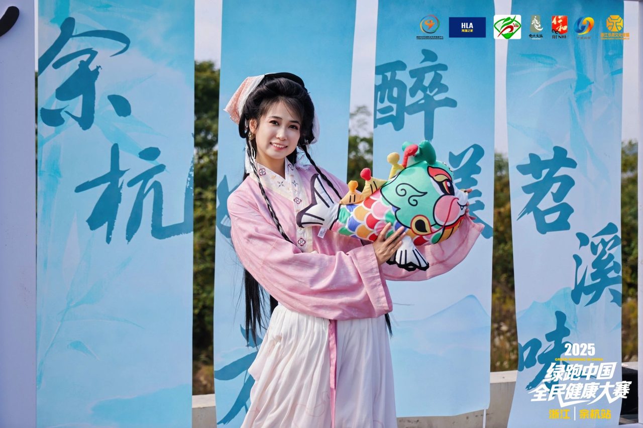 沿途设三大主题打卡点:花漫仁和、河韵余杭、智能制造,还有五大功能补给站,让奔跑兼具趣味与能量;其中文化补给站提供手工糕点,非遗补给站奉上七味咸茶与鱼干,既保障运动所需,更融入余杭本土风味,备受跑者好评。赛事创新打造“绿跑+”多元生态,联动余杭区大运河非遗至味嘉年华暨仁和街道冬捕季活动,围绕“‘渔’见余杭美 非遗‘鲜’到位”推出主题嘉年华,打造非遗、生态、运动一体的农文体旅融合活动。每位参赛选手均获专属联票,完赛后步行直达嘉年华会场:在“活态非遗博物馆”观赏西湖绸伞、体验径山茶宴;与苕溪渔家女、茶艺师等古风NPC互动合影。
