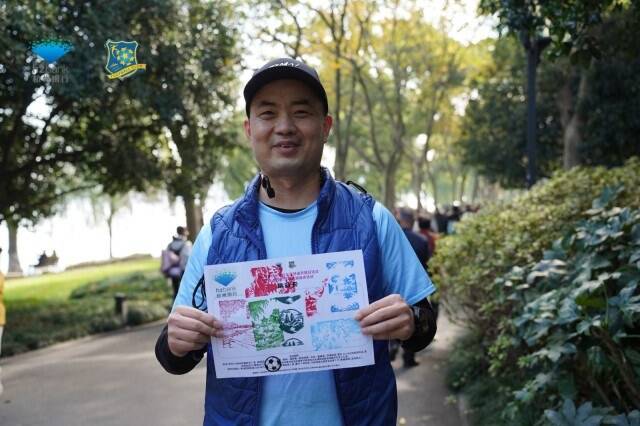 活动中还特别设置了“寻找绿背心NPC”的互动任务。参与者们在徒步过程中寻找身穿绿色背心的工作人员,回答与女足、西湖文化相关的问题,答对即可获得一枚标签,集齐三枚便可兑换一个珍贵的浙江杭州银行女足全队签名足球。这份惊喜,让徒步变成了一场有趣的探险,也拉近了女足姑娘与球迷间的距离。