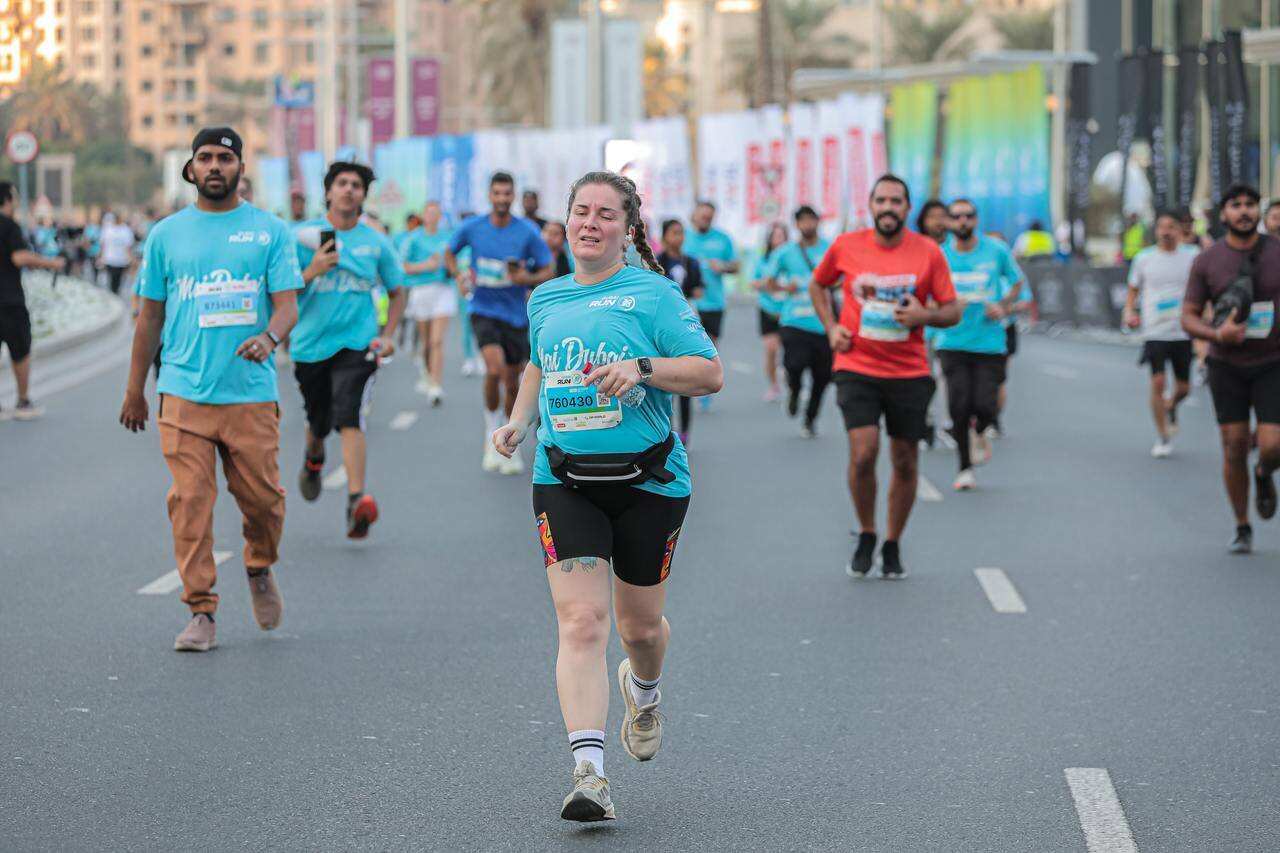 精彩的娱乐节目贯穿整个早晨,营造出激情四射的氛围。随着阿联酋国庆日(Eid Al Etihad)的临近,起跑线上飘扬着阿联酋国旗,而动力滑翔伞则点亮了黎明前的天空。等候区内,巨型LED木偶与激昂的鼓乐演奏为参赛者注入满满能量。来自UNTOLD音乐节的DJ以及知名主持人Kris Fade与Katie Overy在起点与终点处不断带动现场氛围,沿途还有军乐队、踩高跷的艺人与马戏表演者为跑者助威。完赛者则在终点处迎来清爽水雾、泡泡拱门与吉祥物的热烈庆祝。