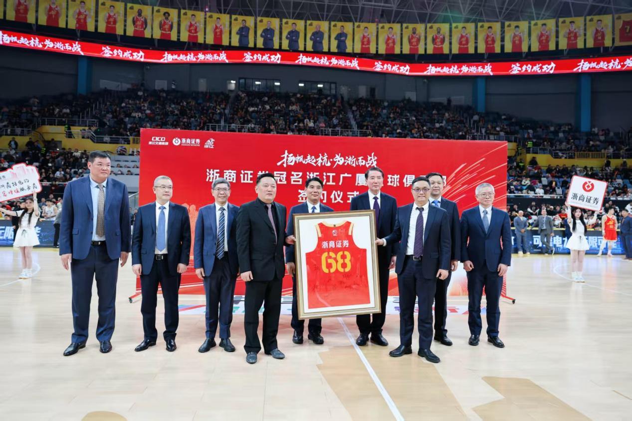 中场休息时,举行了“扬帆起杭·为浙而战”浙商证券冠名浙江广厦男篮签约仪式。浙江省体育局、浙江交通集团、浙商证券、浙江广厦篮球俱乐部共同签署四方战略合作协议,本次合作既是浙江交通集团赋能体育产业的重要战略布局,也是浙江省体育局推动职业体育发展的创新实践。
