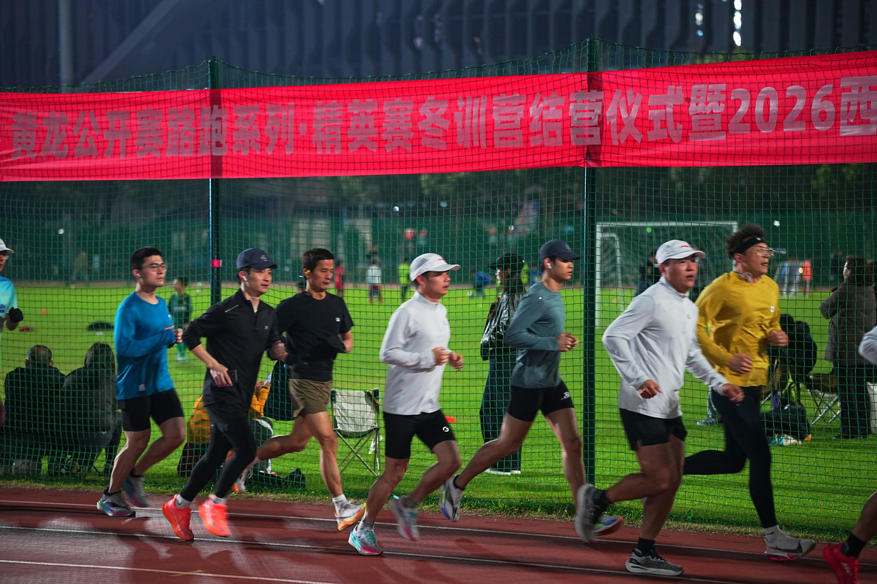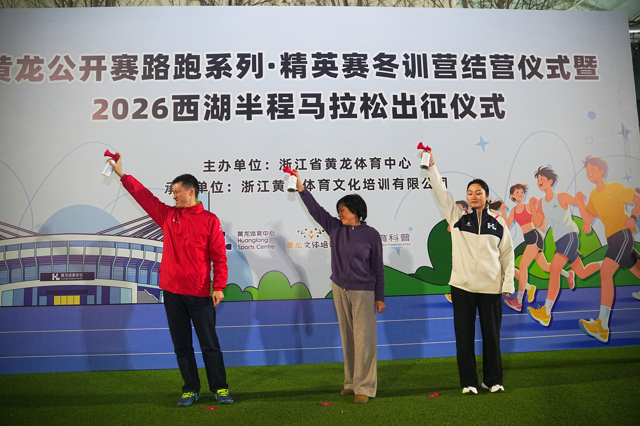 2026西湖半程马拉松倒计时一周,黄龙公开赛路跑系列·精英赛冬训营结营仪式暨2026西湖半程马拉松出征仪式,在黄龙体育中心室外田径场火热上演,国家级健将运动员、2001年杭州马拉松女子冠军王阳出席活动为选手助力。